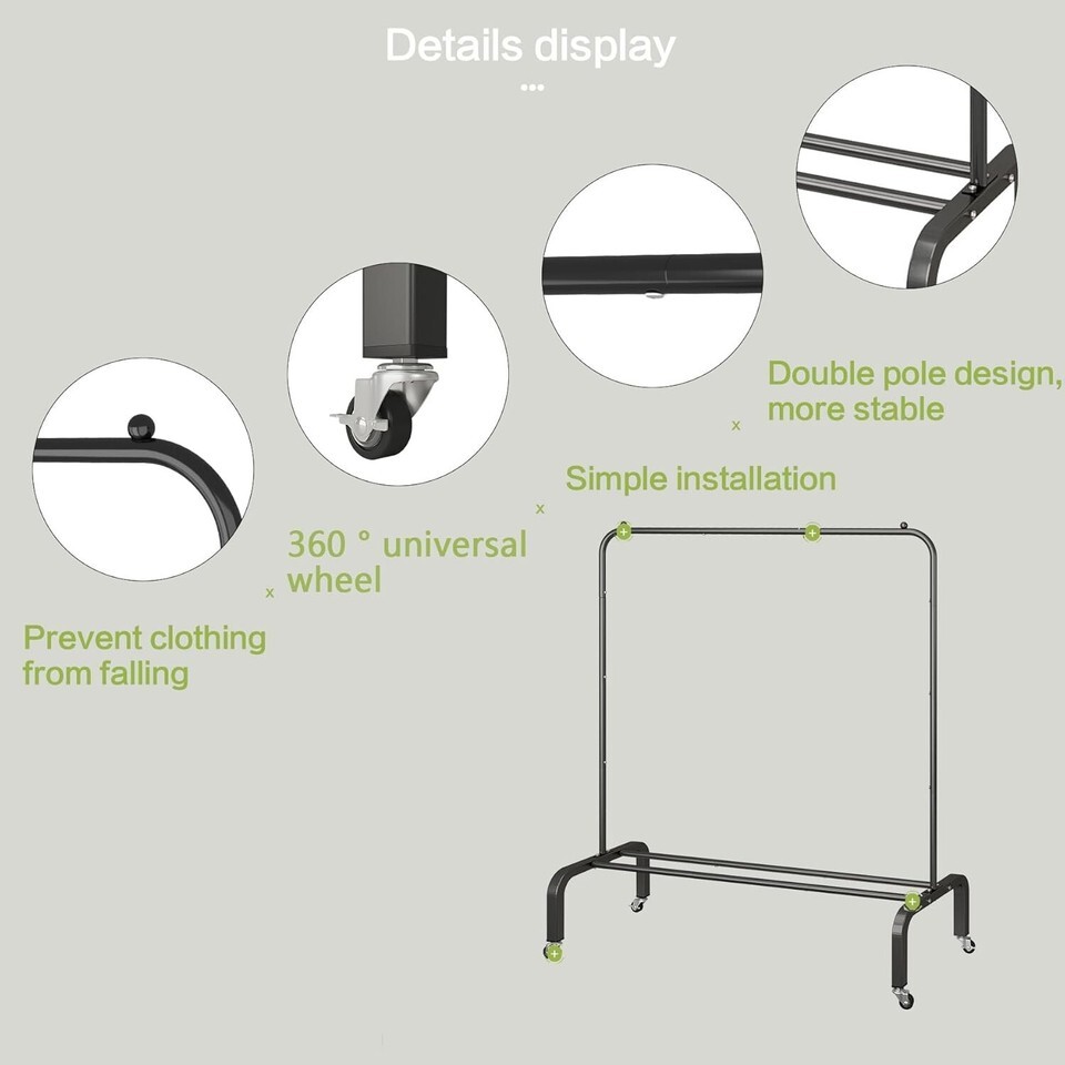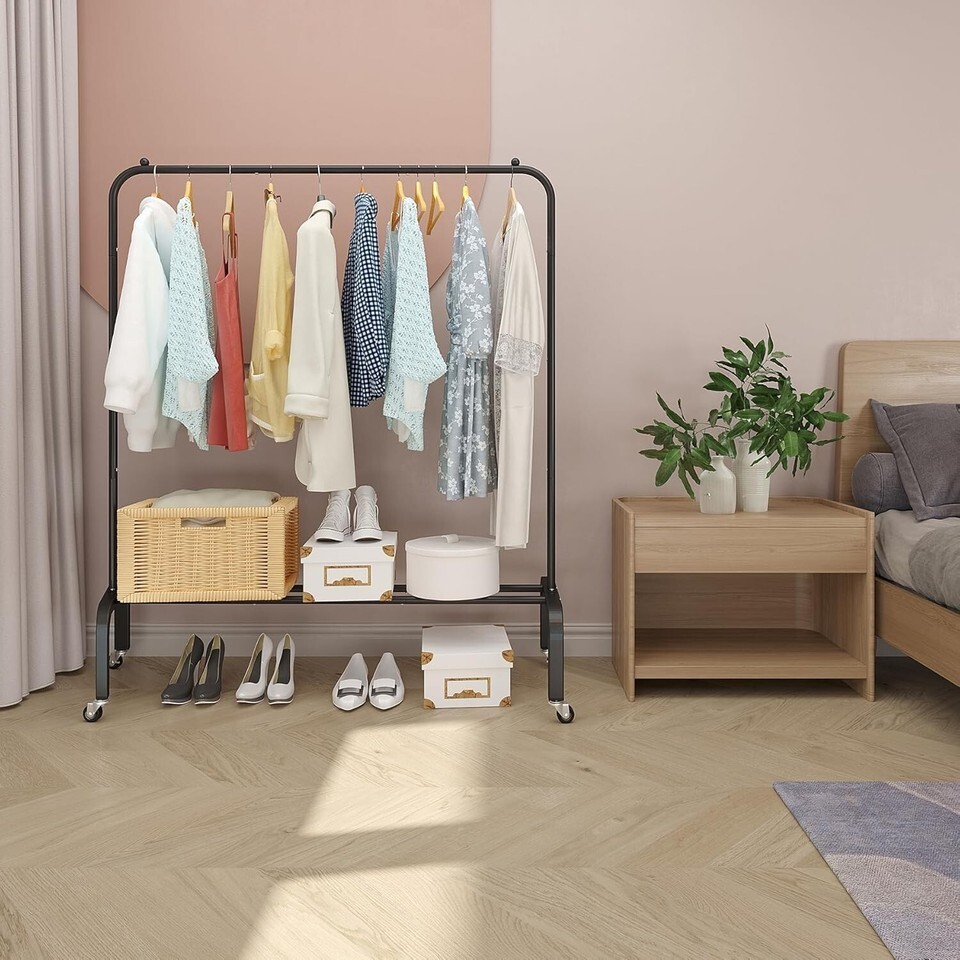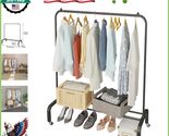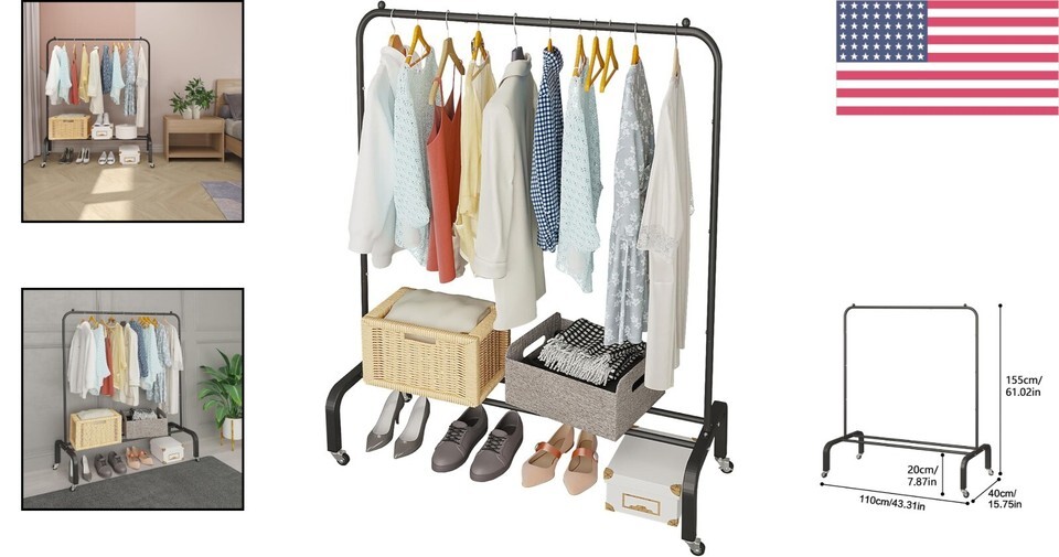 - Multi-Functional Metal Clothing Rack on Wheels with Shoe Storage - Easy Install