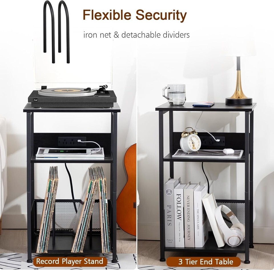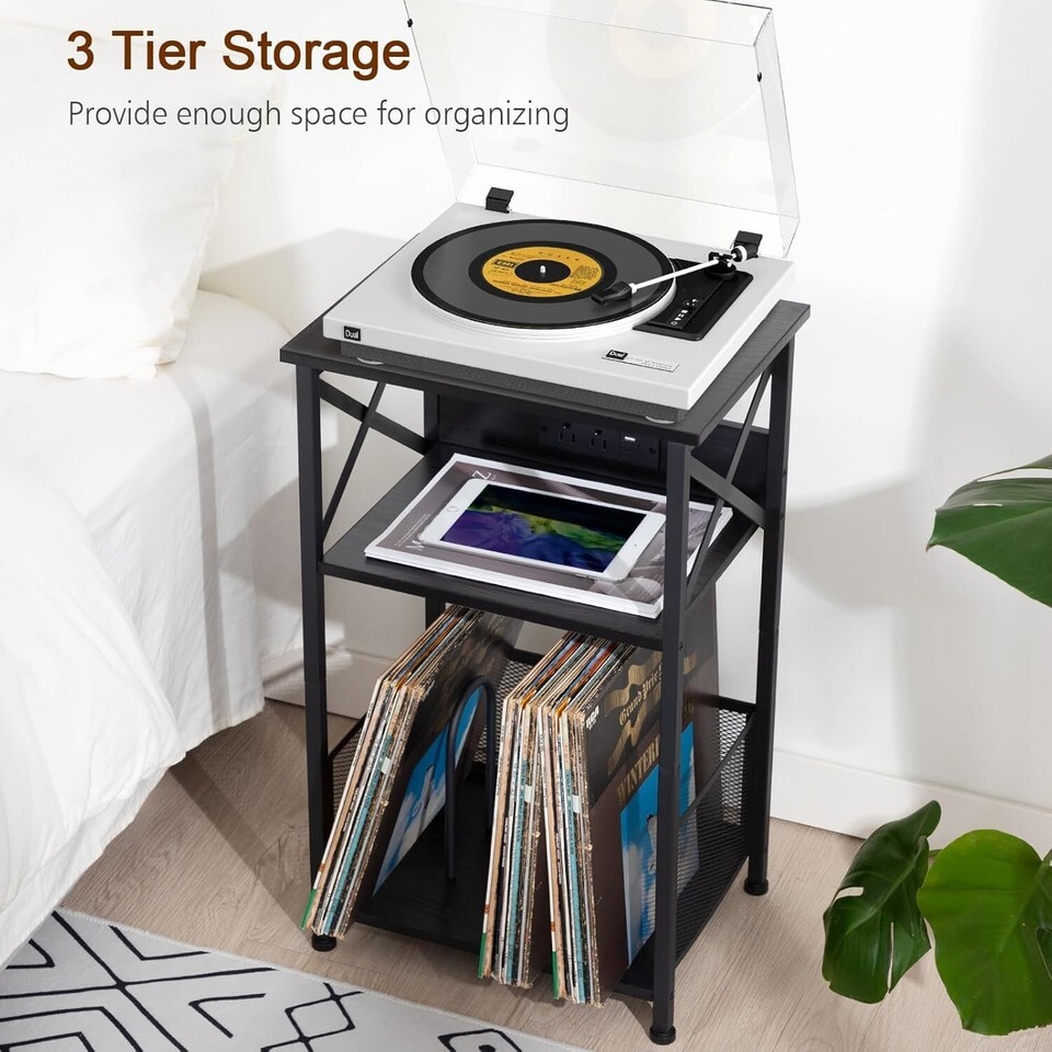 Convenient Charging Station: Equipped with 2 AC outlets and a USB-C port, it allows you to easily charge your record player, smartphone, and other devices without hassle.