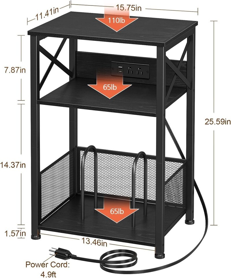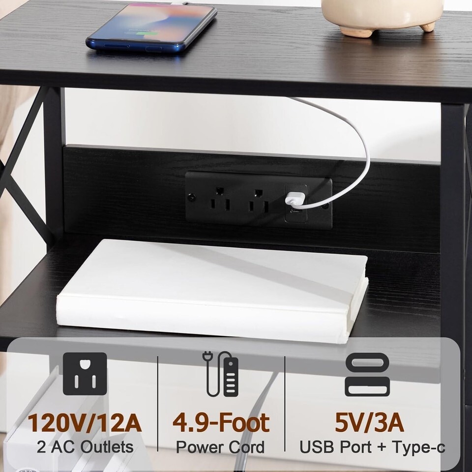 Features: Charging Station,AC Outlets,USB-C Port,Storage Cabinet,3 Tier End Table,Large Storage Space,Compact Design,Modern Style,Multi-Occasion Use,Easy to Assemble,Durable Construction