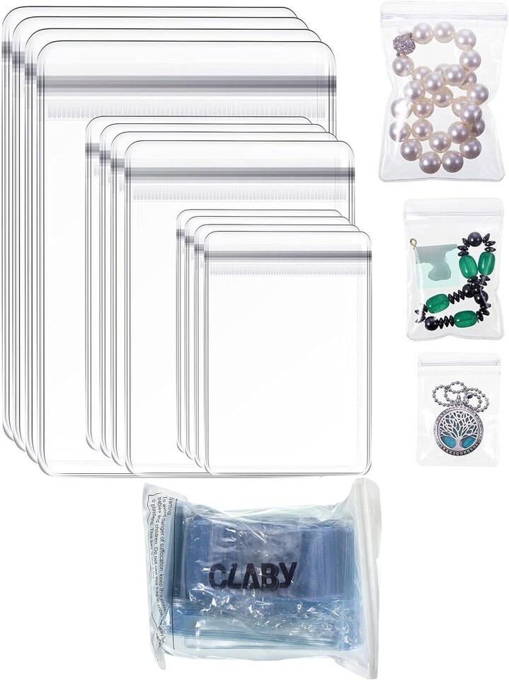 - Multi-Functional Reusable Jewelry Bags - 120 Clear Anti-Tarnish Zip Pouches