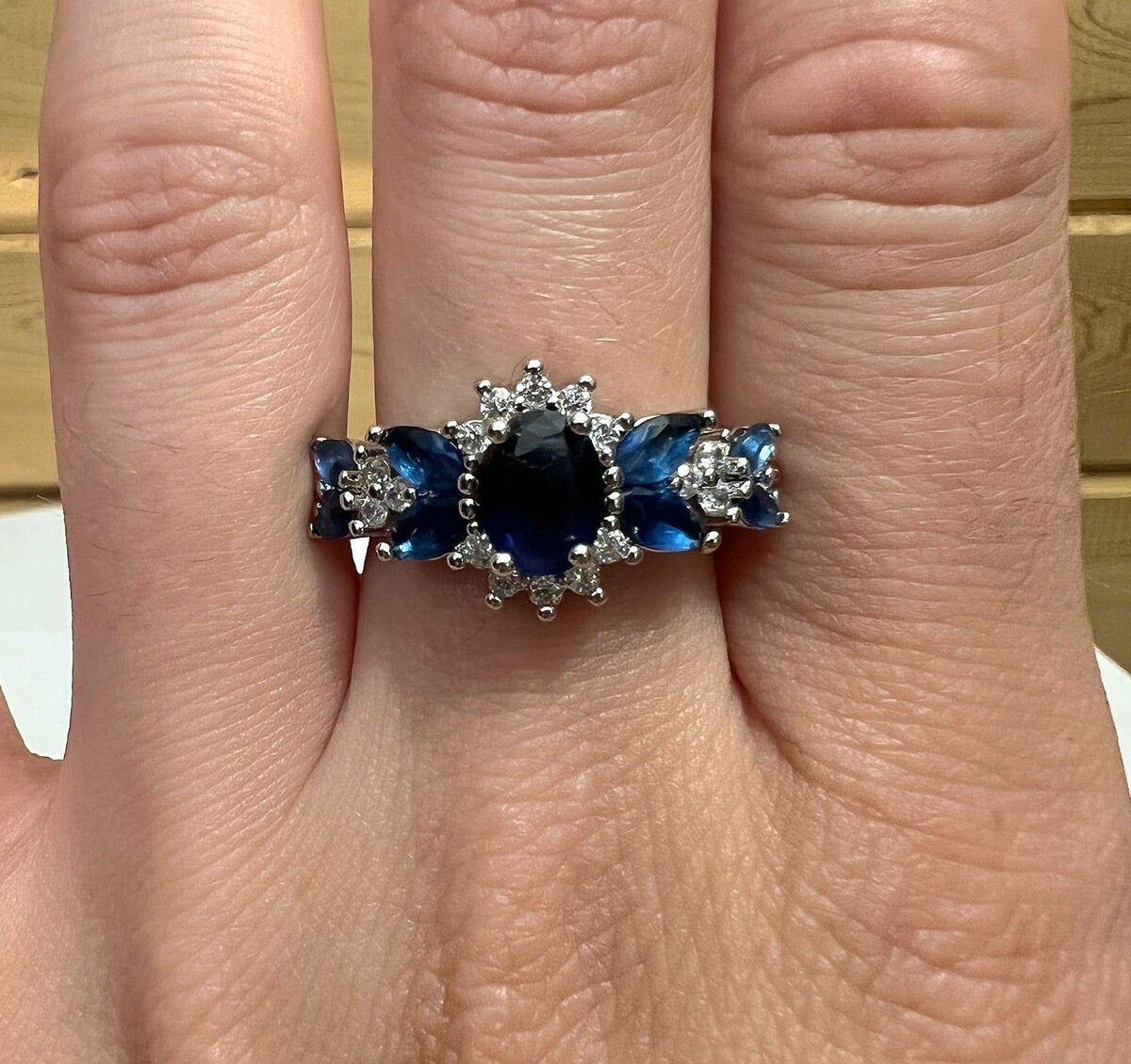 Multi Gem Crystal Crown Style Ring Silver Colored Band Size 8-10