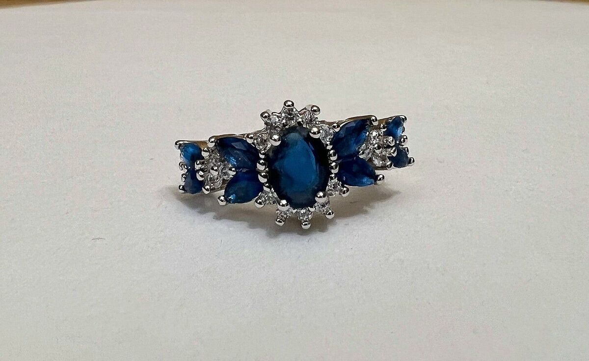 - Multi Gem Crystal Crown Style Ring Silver Colored Band Size 8-10