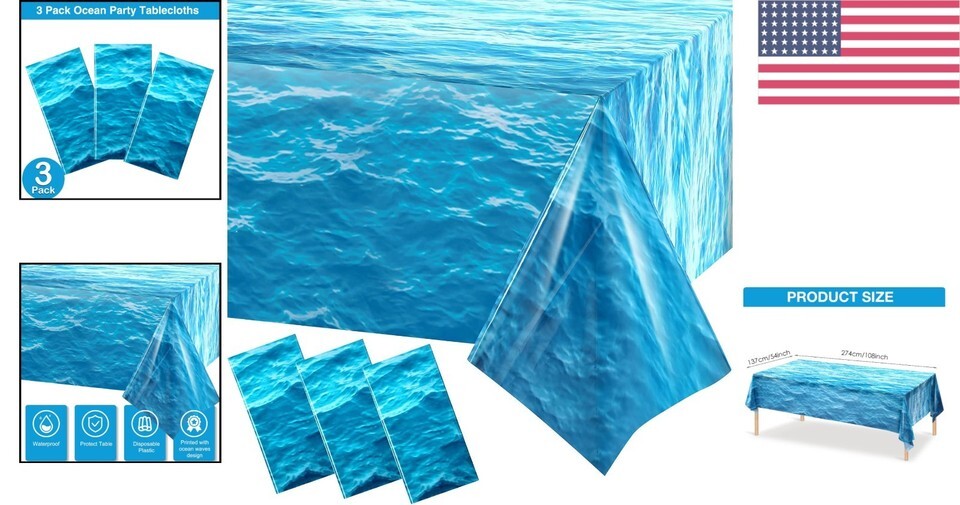- Multi-Purpose Ocean Waves Tablecloths for Beach, Pool, and Birthday Celebrations