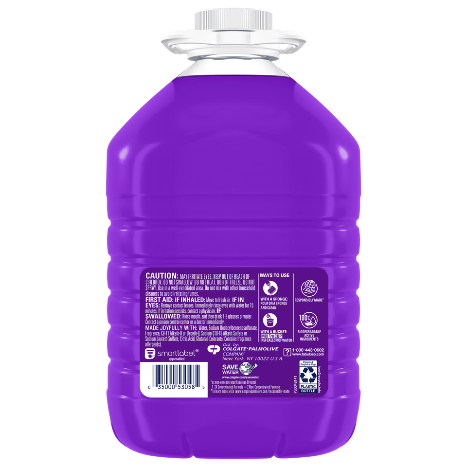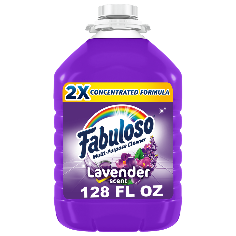 2X concentrated formula provides 2X more active ingredients compared to non-concentrated Fabuloso Original Multi-purpose cleaner for a wide range of surfaces, from floors to furniture to appliances Mix 1/8 cup in a gallon of water or pour on a sponge and clean Lavender scent provides long-lasting freshness Uses 50% less plastic by following dosing instructions to get twice as many uses out of one bottle v. the same size of Fabuloso Original Use Fabuloso on sinks, toilets, tubs, showers, floors, sealed wood surfaces, appliances, counters, windows, mirrors, walls, doorknobs and furniture. Available in: Lavender Scent, Refreshing Lemon Scent, Passion of Fruits Scent, Citrus Fruits with Baking Soda Scent, Bleach Alternative? Spring Fresh Scent, Tropical Spring Scent, and Orange Scent with Baking Soda. ? Bleach-free option with 20% more active ingredients vs other Fabuloso 2X Concentrated products Fabuloso comes in a variety of convenient sizes: 16.9oz, 28oz, 33.8oz, 56oz, 128oz, 169oz, 210oz. Fresh scent