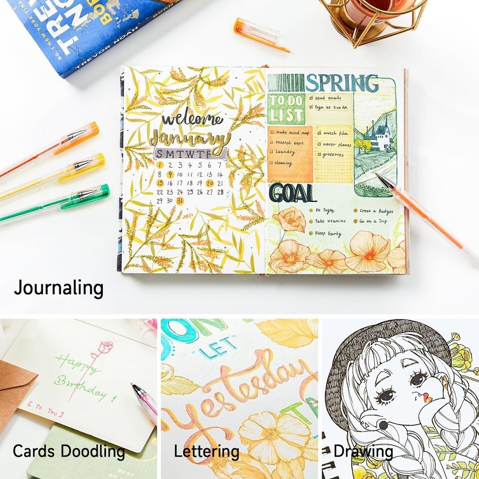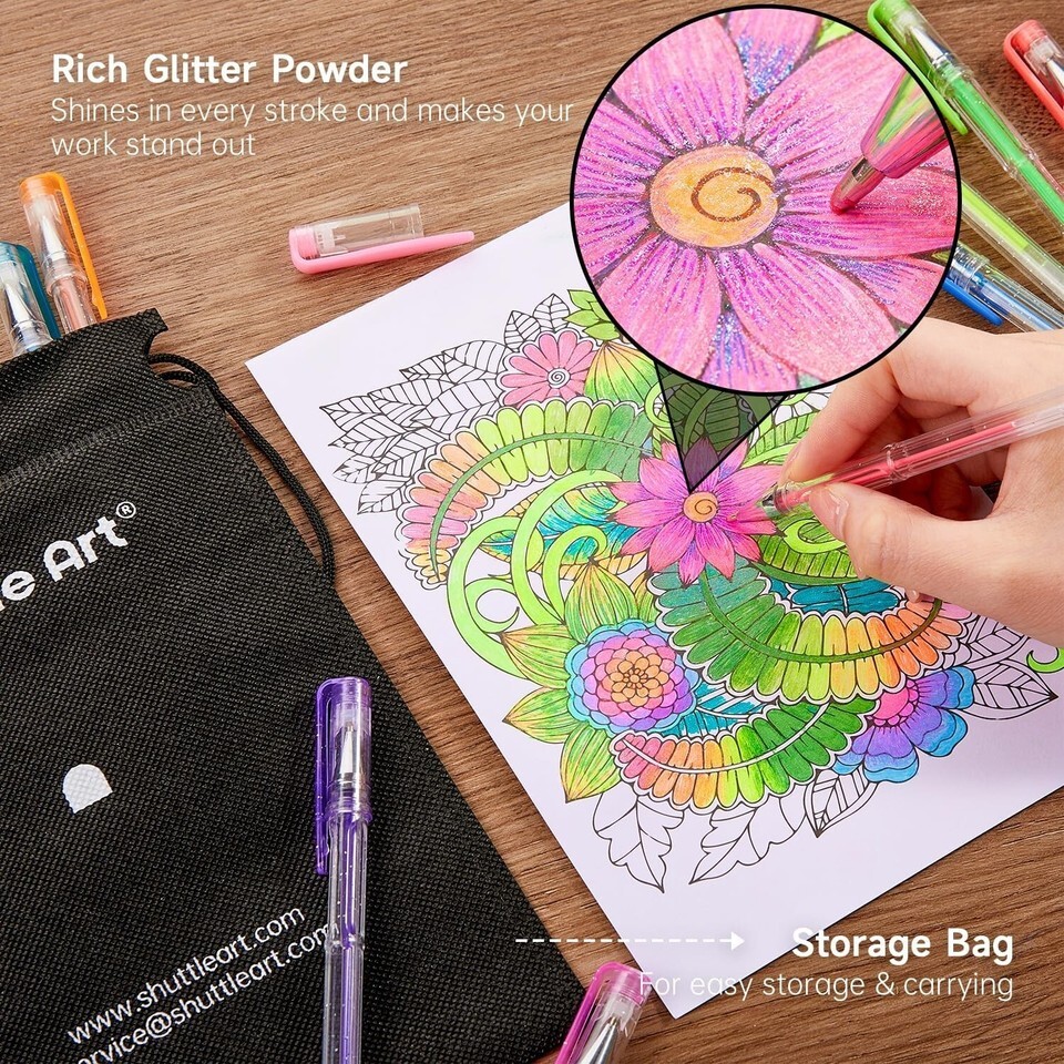 Experience a world of vibrant color and shimmering creativity with our 80-pack Glitter Gel Pens, designed specifically for adult coloring, crafts, and journaling.