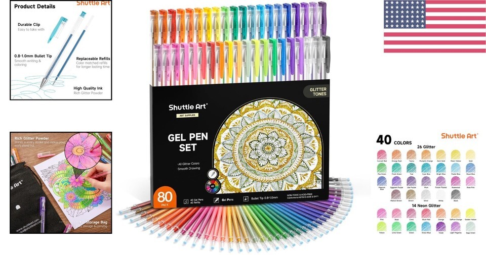 - Multicolor Glitter Gel Pen Set - 80 Pack for Adult Coloring, Crafts & Journaling