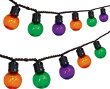 Way To Celebrate Halloween Indoor/Outdoor LED G30 Globe String Lights, Multicolor, 21' Includes 70 colorful LED lights in orange purple and green Measures 21 feet lighted length with a total length of 22 feet G30 globe-style bulbs provide a glowing seasonal effect Designed for both indoor and outdoor decorating with string-to-string capability
