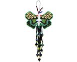 Handcrafted beaded butterfly ornament with a long fringe tail dangle. |