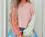 Peach Blossom Corded Colorblock Drop Shoulder Loos...