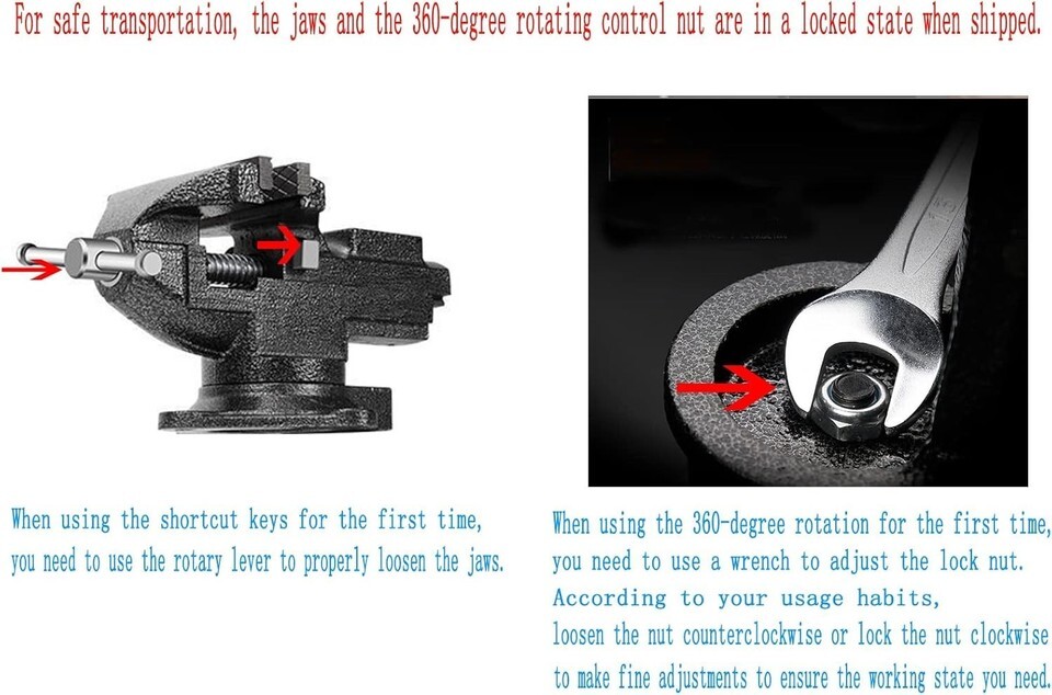 Dual-Purpose Design: This innovative vise can either be screwed firmly to your workbench or conveniently clamped for enhanced usability. With a base clamping capacity of 4 inches (100mm), it's adaptable for various thicknesses, making it the perfect choice for home, workshop, and professional tasks.