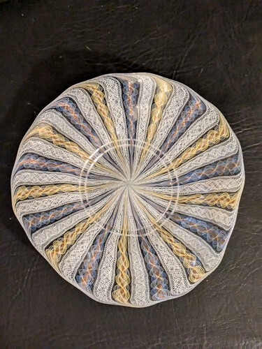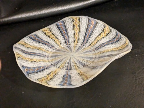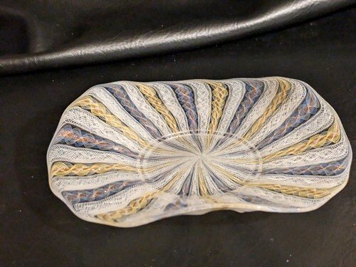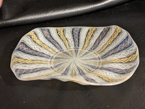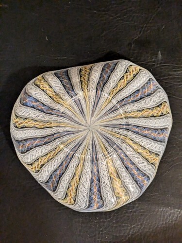 Murano Art Verre Plat Ruche Zanfirico Ruban Doré Cuivre Aventurine 7