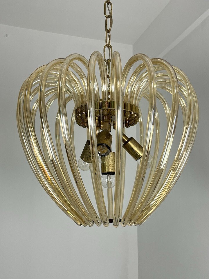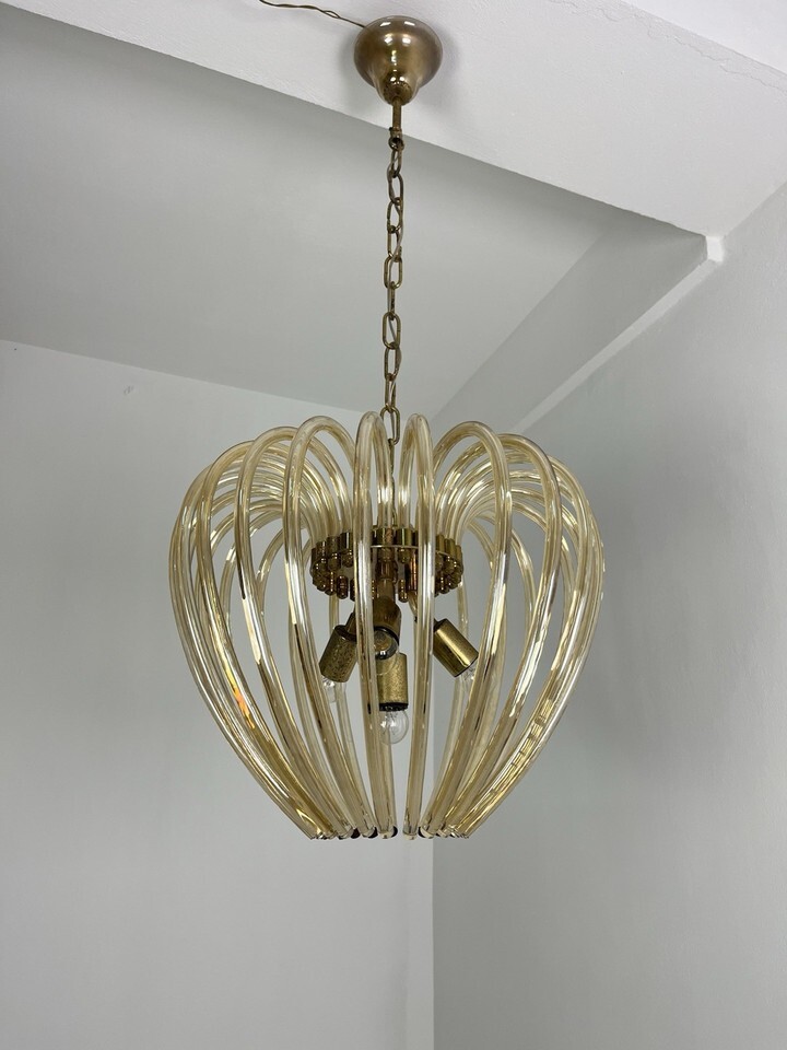 Murano Glass And Brass 4-Light Chandelier Attributed To Venini 1960s- show or...