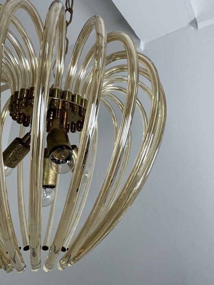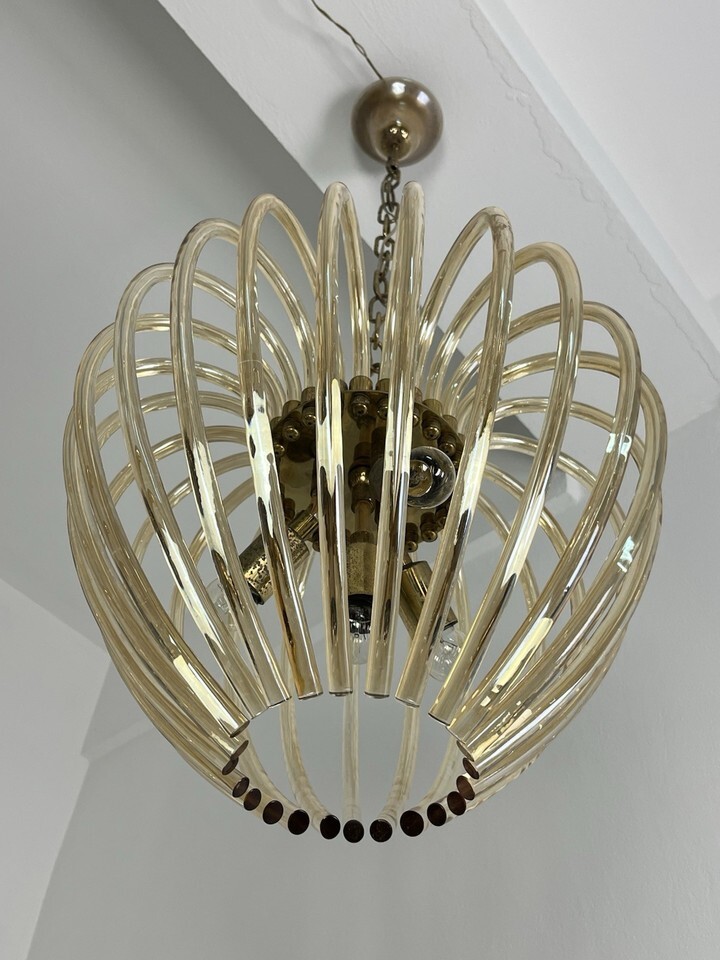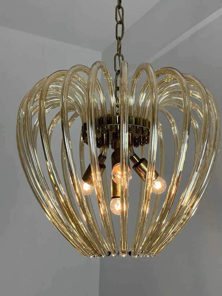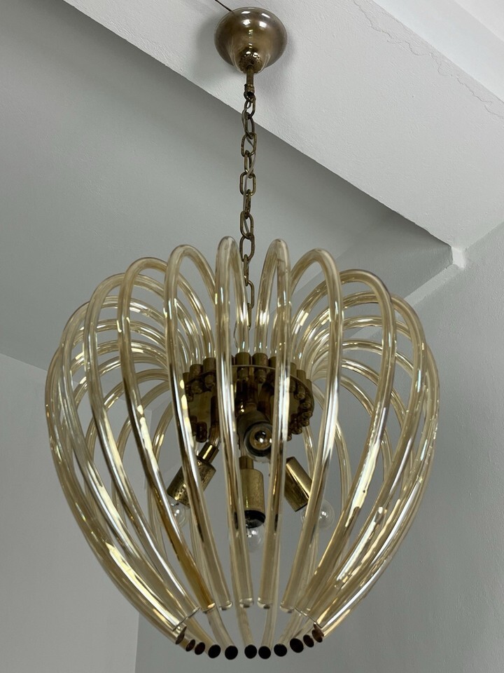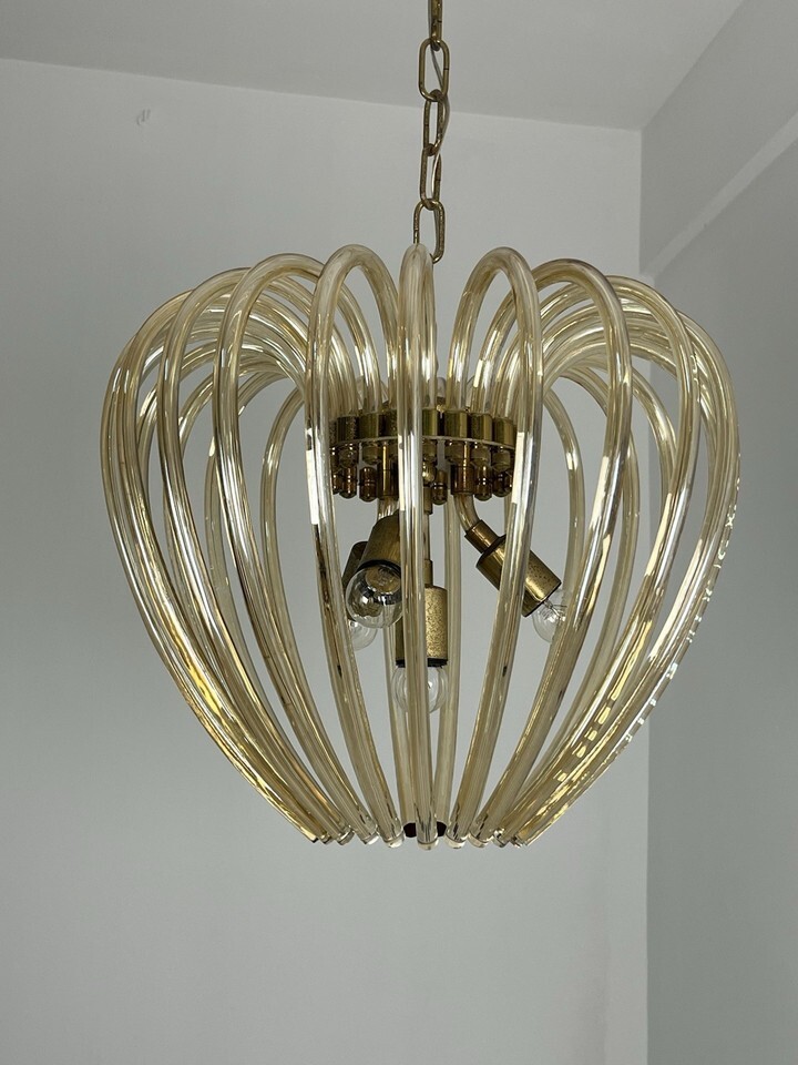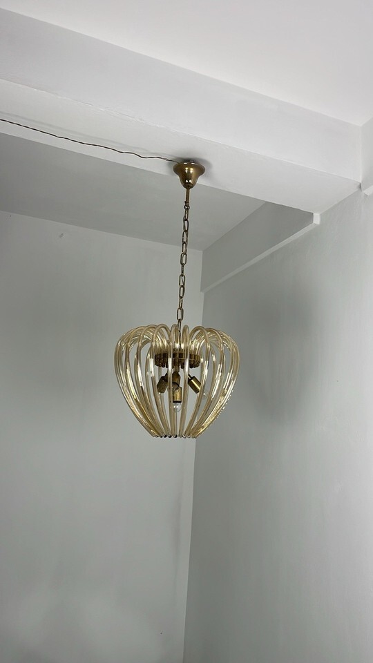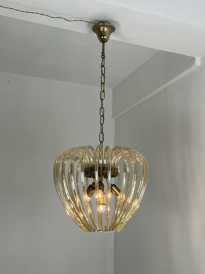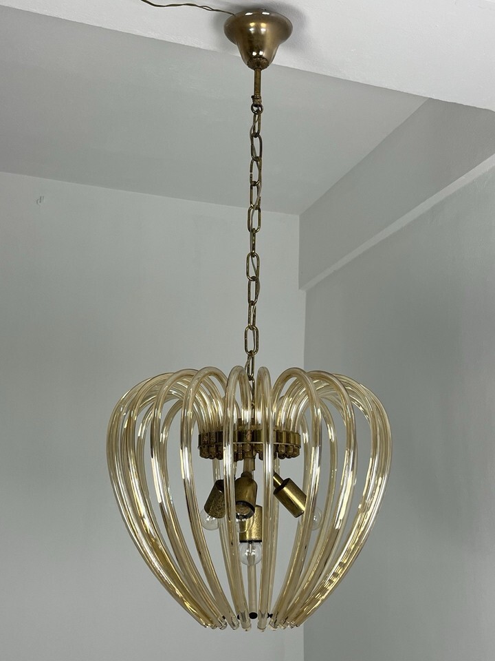 Lampadario 4-luci Vetro Di Murano E Ottone Attribuito A Venini Anni ?60.