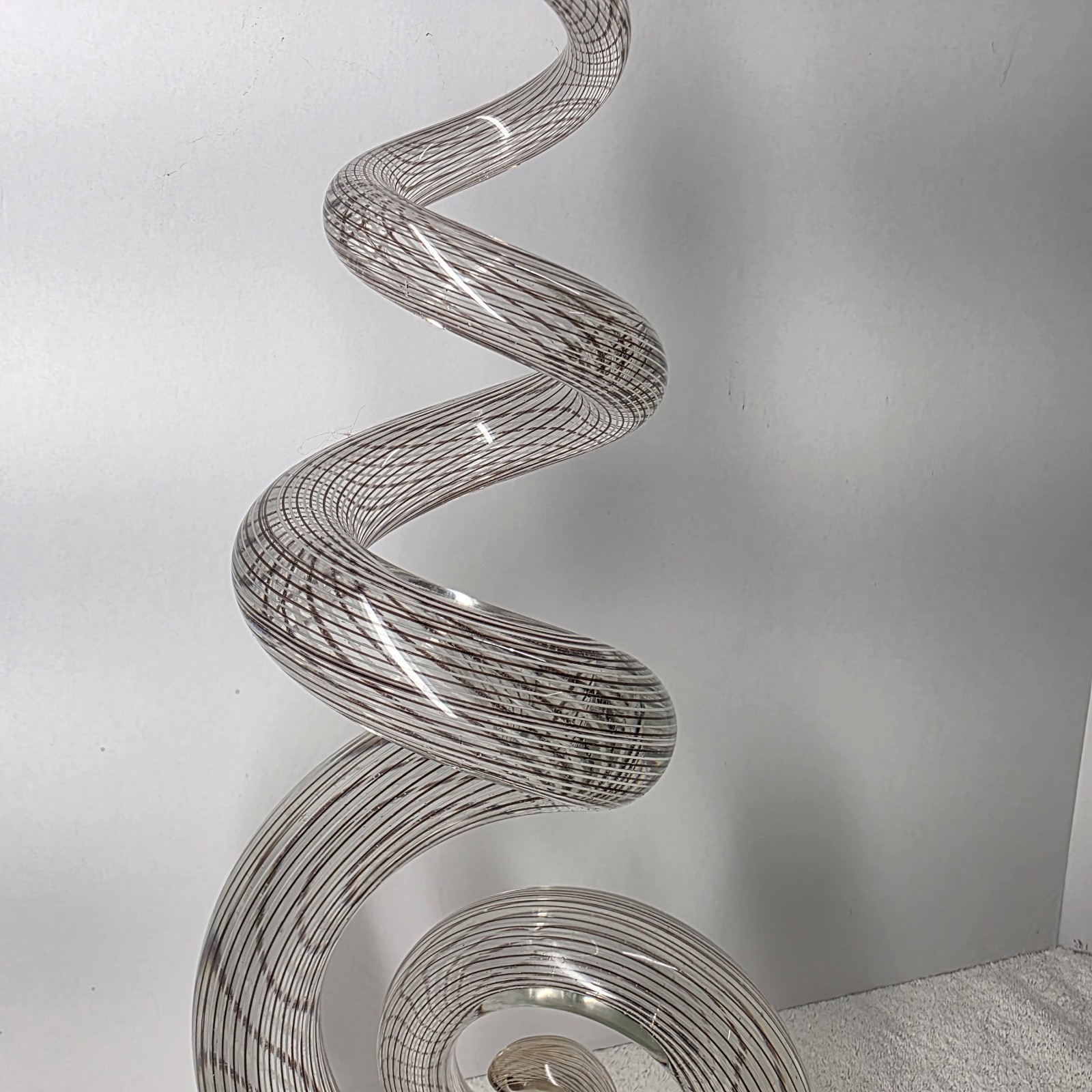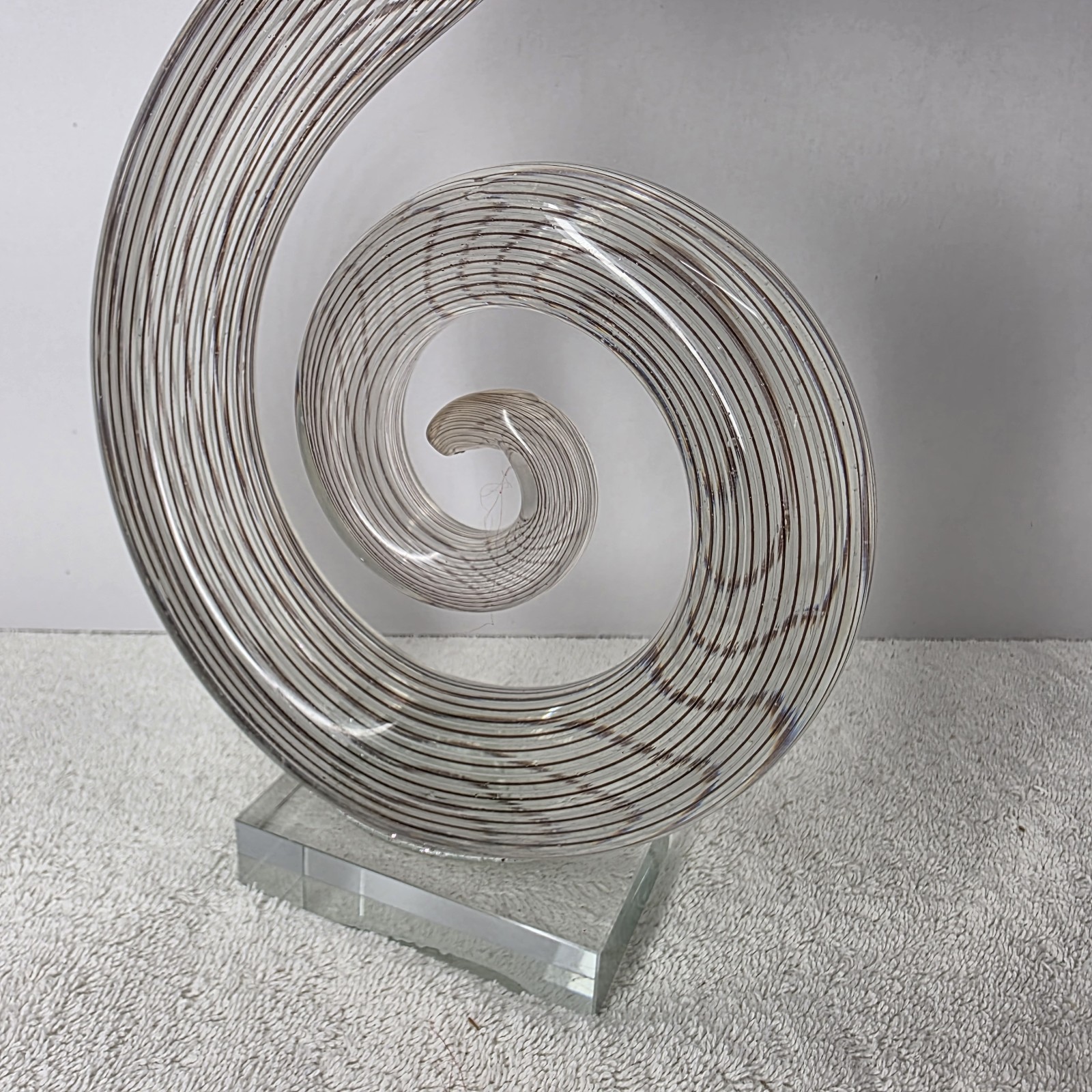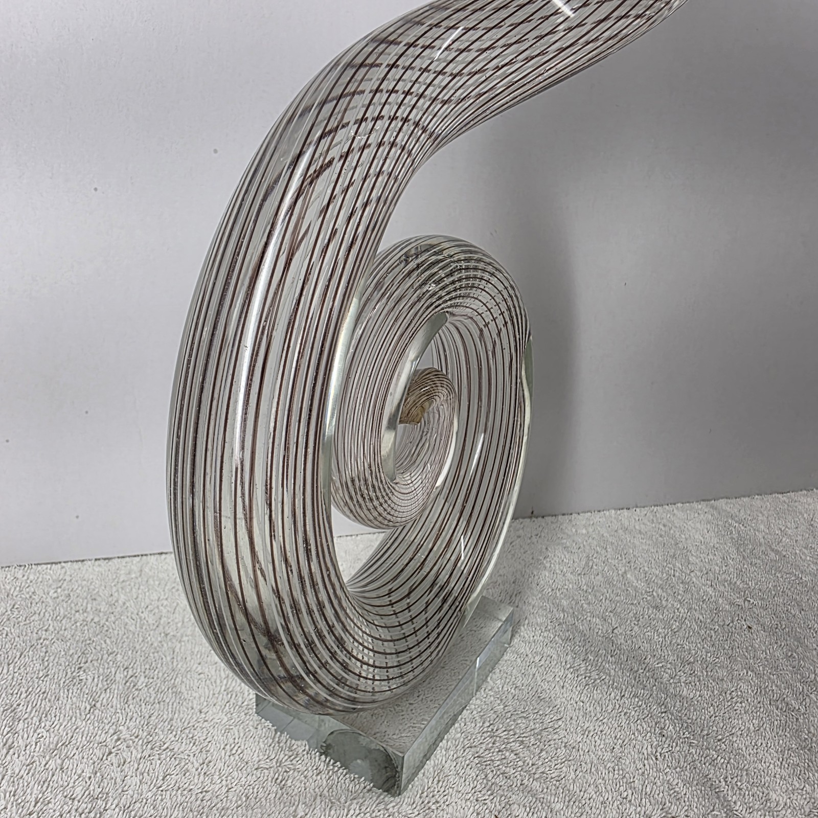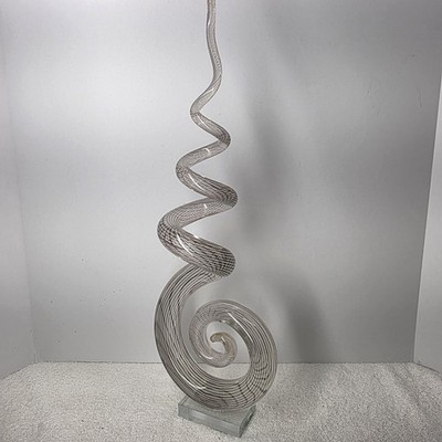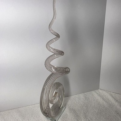 - Murano Style 20" Abstract Swirled Coiled Solid Clear Art Studio Glass