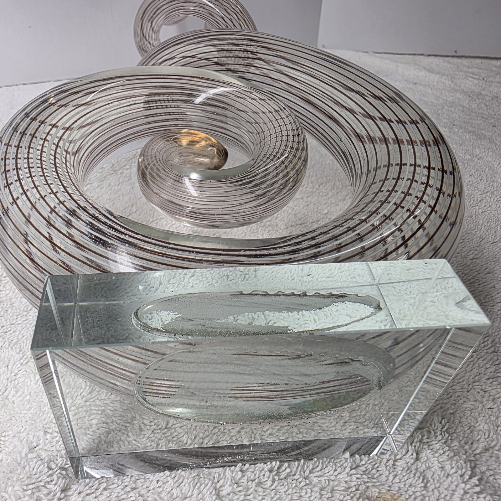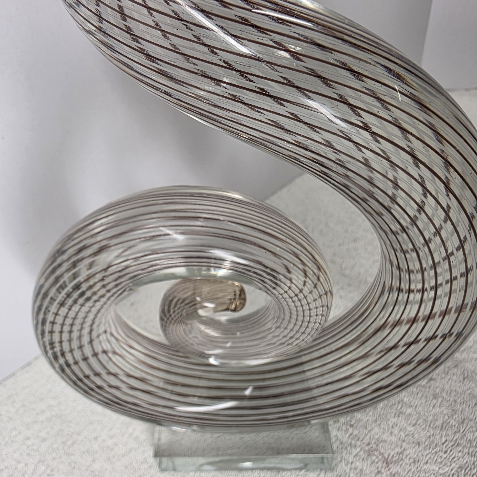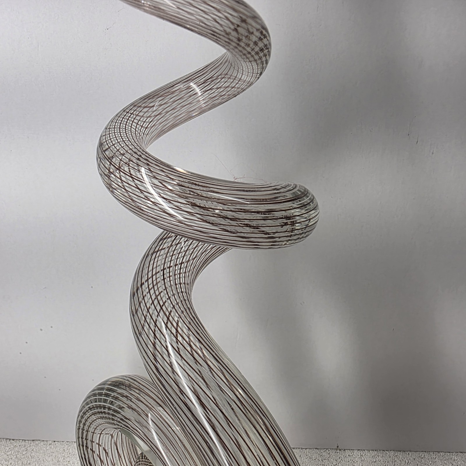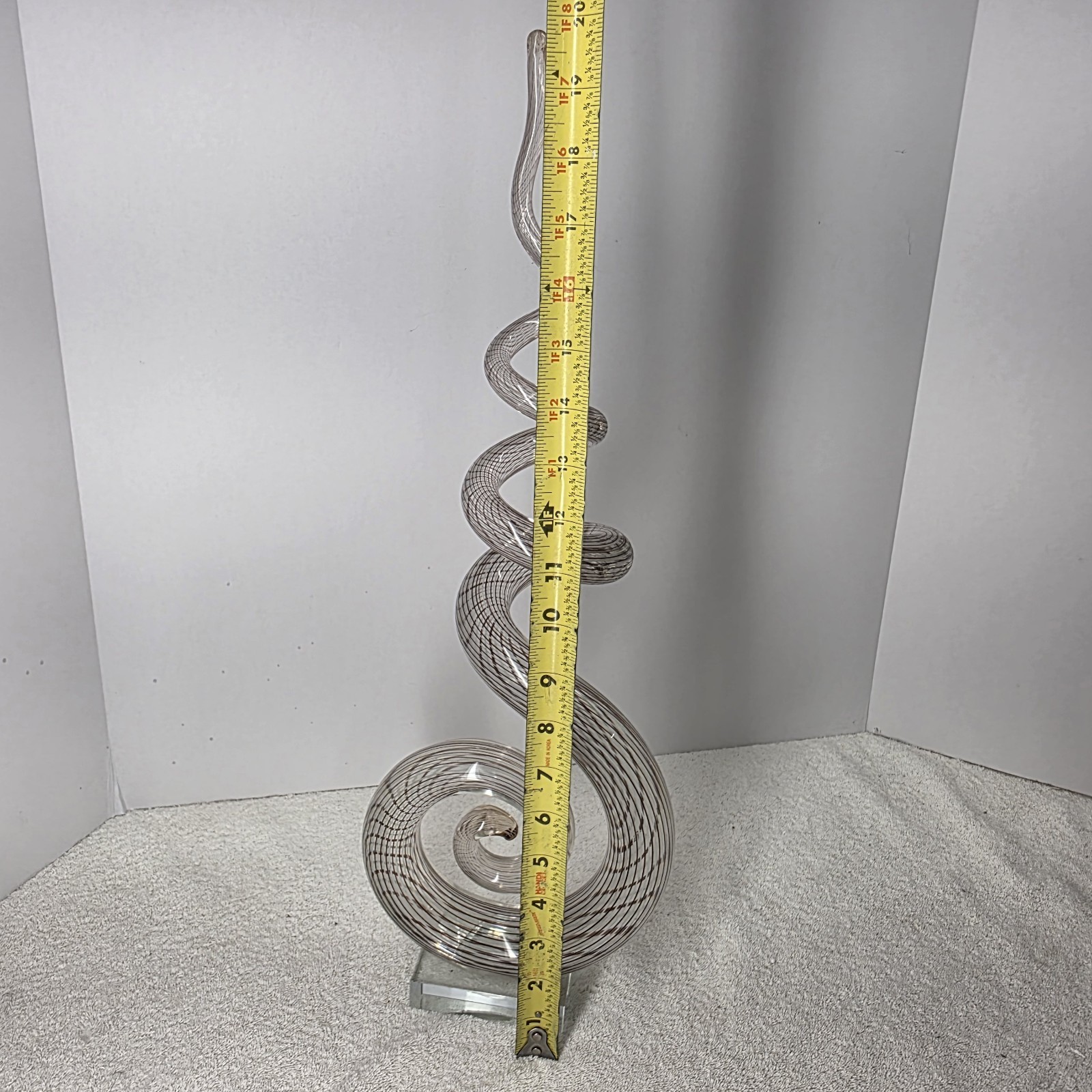 - Murano Style 20" Abstract Swirled Coiled Solid Clear Art Studio Glass
