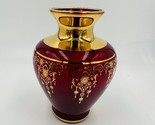 - Murano Vase Glass Red Gold Trim Gilding Overlay Late 20th Century Bud