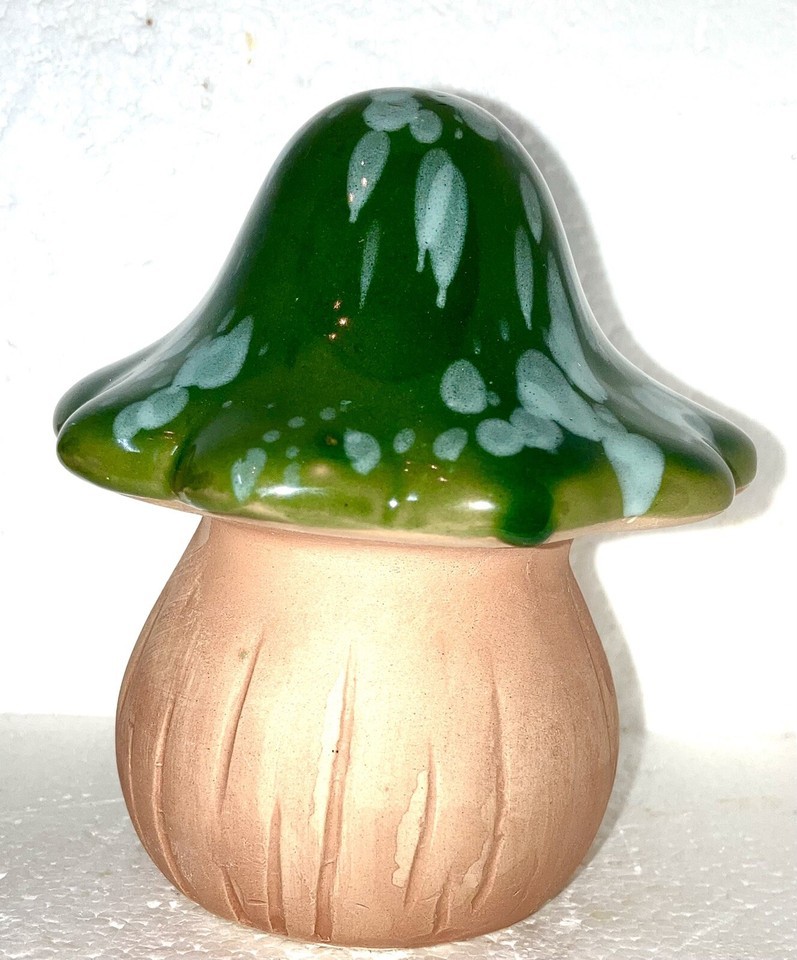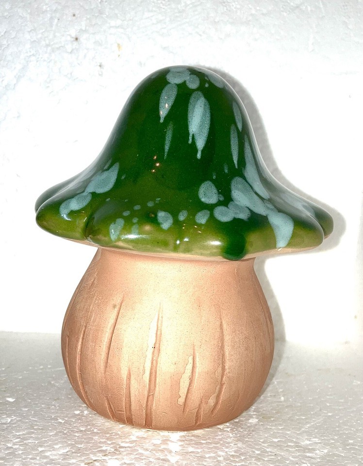 Mushroom Drip Glaze Ceramic Figurine - indoor or outdoor GREEN CAP