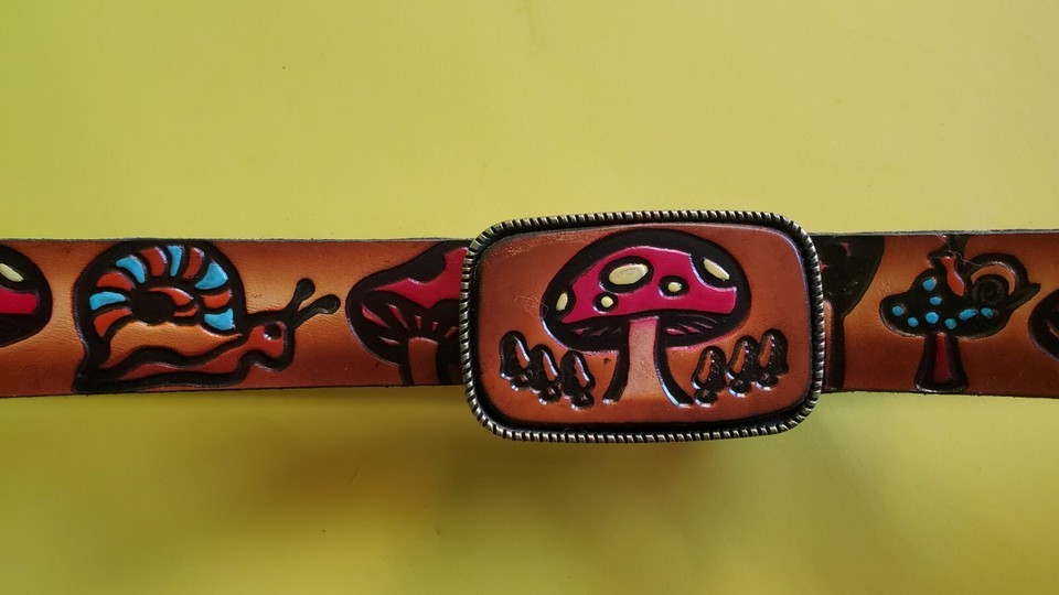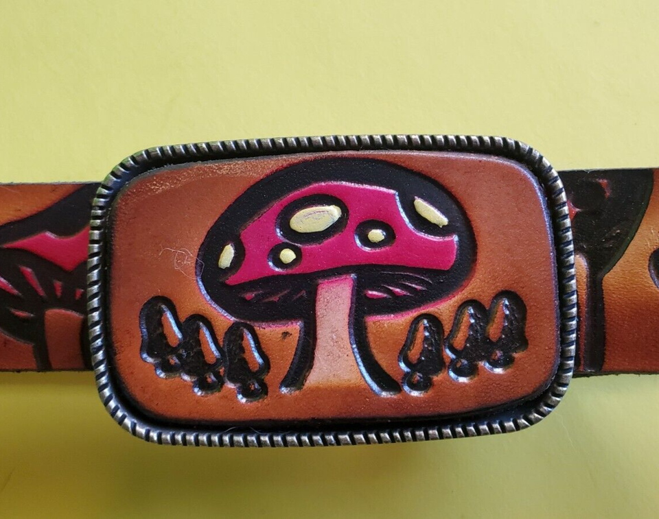 - MUSHROOMS, MUSHROOMS & MUSHROOMS Genuine Leather Belt with Matching Leather Mush