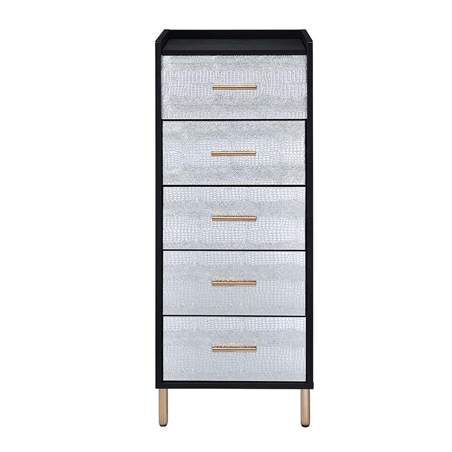 - Myles 5 Storage Drawer Jewelry Armoire, Black, Silver & Gold Finish
