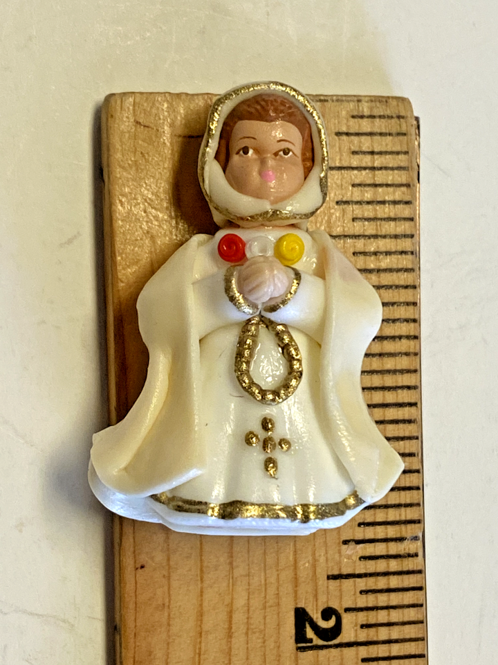 You are purchasing a beautiful very cute miniature statue that only measures 1.75" h. It's hand painted statue of Mystic Rose.( Queen of spiritual flowers)