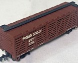 The product is a pre-built N scale freight car replica of the Deutsche Bahn corporate roadname, Katy M-K-T 47159. It is made of plastic, weighs 0.5 lb, and has a height of 1.6 in. The item was manufactured in Austria in 1981 and is considered vintage. It is powered by an analog AC control system and runs on a 2-rail-2-conductor rail system. The product is a model railroad and train toy designed for ages 17 years and up.