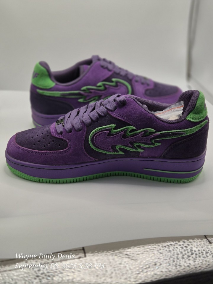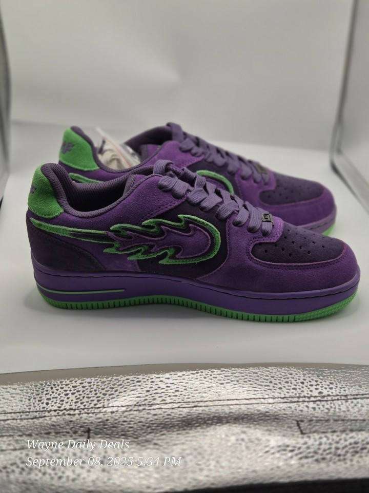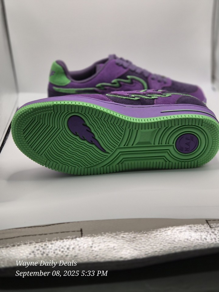 NAF Sneakers Purple Green Flame Graphic | Size 8.5 US | Men Rare Streetwear