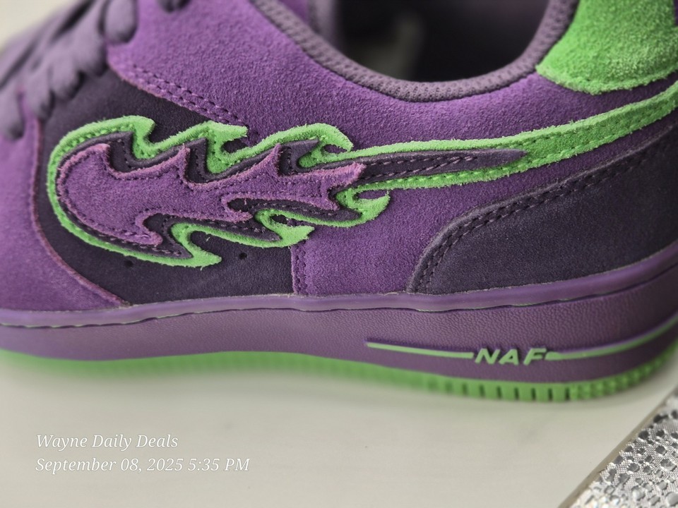 - NAF Sneakers Purple Green Flame Graphic | Size 8.5 US | Men Rare Streetwear
