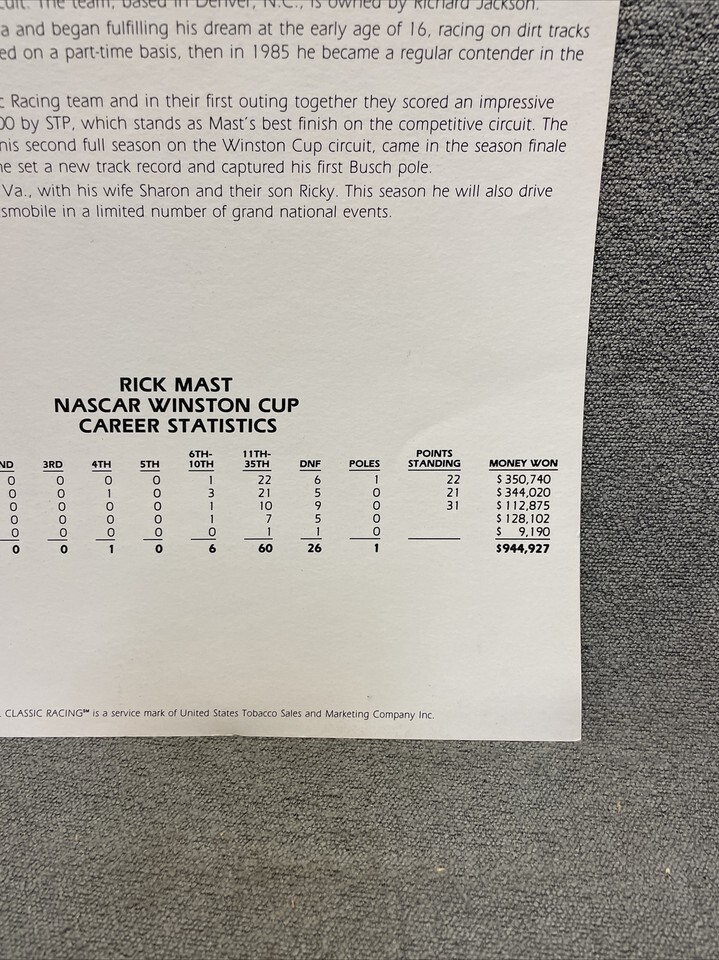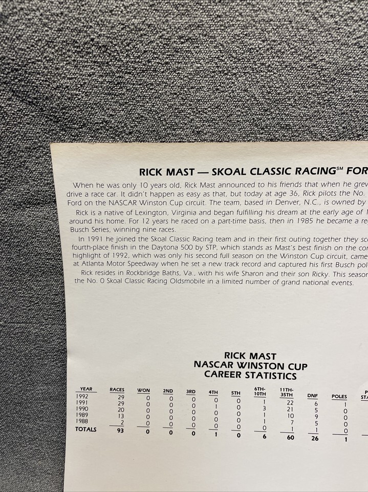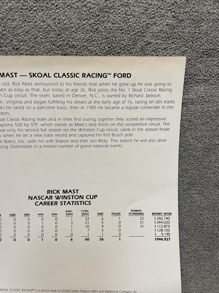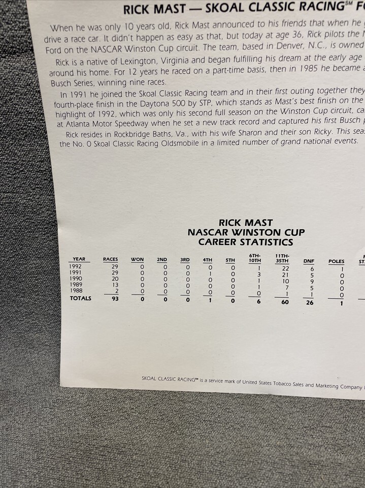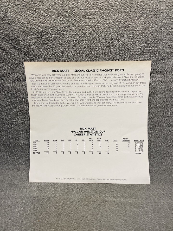 NASCAR Racing Driver Rick Mast Autograph Card KG Skoal Ford Craftsman Race
