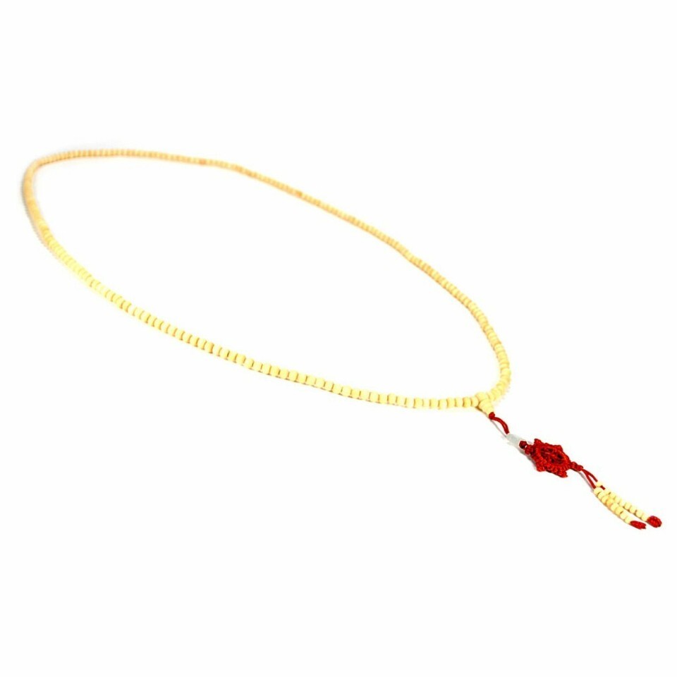 This mala is made of 216 wood beads and a Buddhist wheel tassel. It is strung with durable elastic cord.
