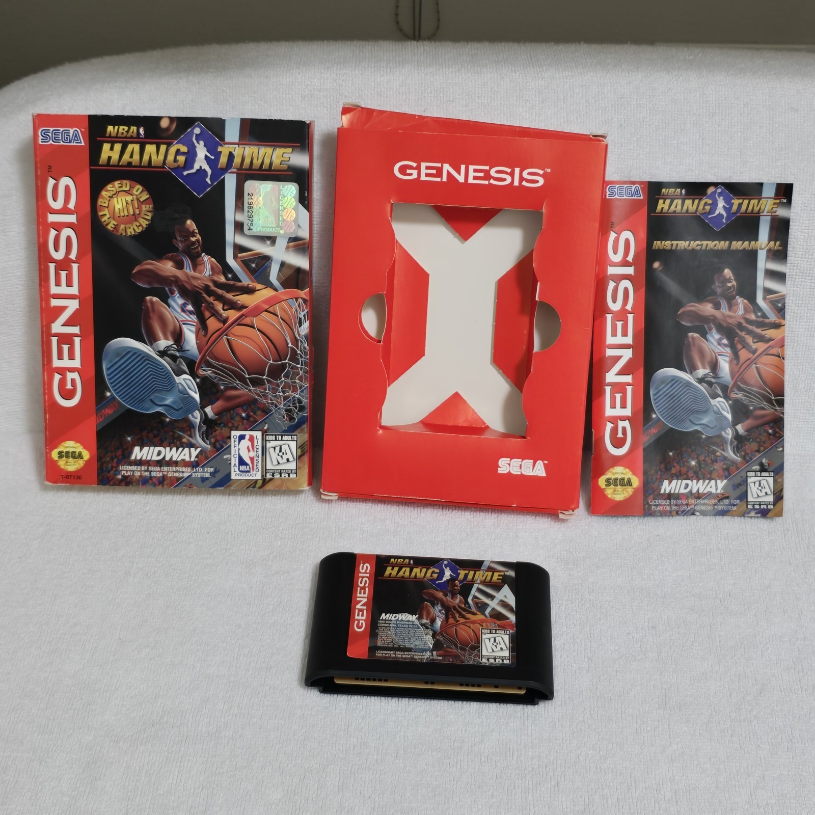- NBA HangTime Sega Genesis Complete CIB Box Manual Tested Authentic