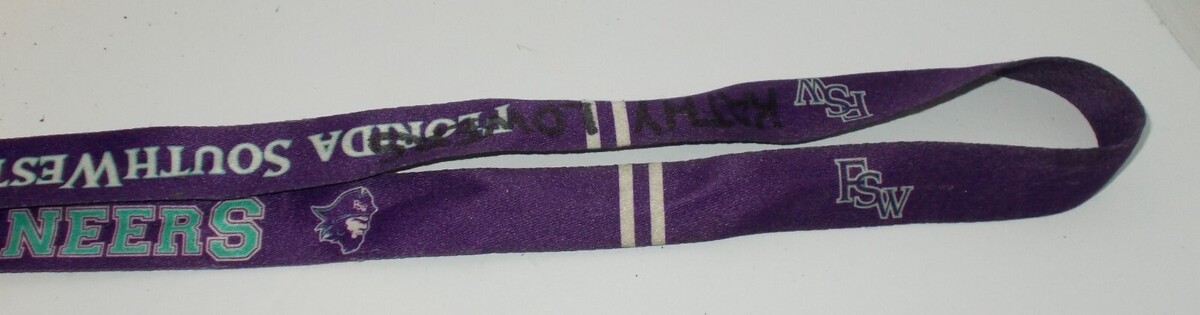 For Sale is a NCAA Lanyard Florida Southwestern State College FSW Buccaneers Purple. Its In good used condition as pictured. Please ask Any and All Questions prior to purchasing. Fast Same or Next day shipping with Free Delivery Confirmation within the U.S. Payment Due within 7 days of purchase (if you need more time please let us know In advance) we love to combine shipping is always a Yes and Most of the time Additional Items Ship for free.