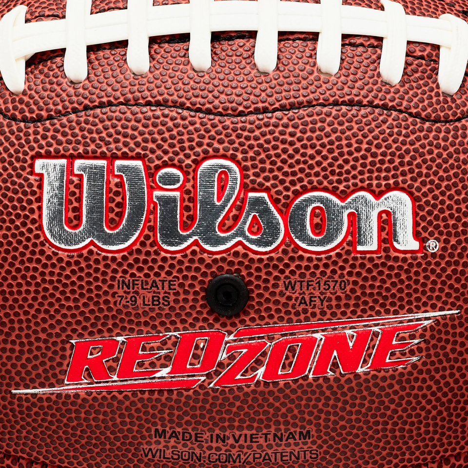 The Wilson NCAA Red Zone Football is ready for hours of play among all ability levels. The composite leather cover is easier to catch and offers a softer feel than traditional leather. All four panels are sewed together around the bladder, not glued on, which increases the durability of the ball by eliminating the possibility of panels peeling off when the glue weakens. Micro-textured laces provide enhanced throwing grip. This football is the NCAA's official size, recommended for ages 14 and up. Also available in junior (ages 9-12) and peewee (ages 6-9) sizes.