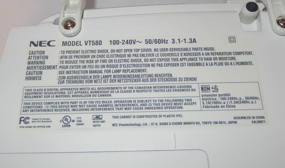 Don't miss this opportunity! This NEC VT580 Portable Projector is in excellent, near-new condition with incredibly low usage hours. Perfect for presentations, home theater, or classroom use.