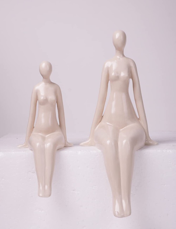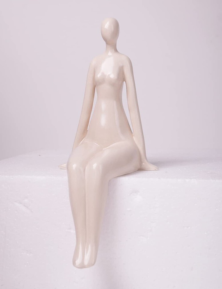 - NENBOLEC Woman Statue Figurine White Ceramic 7.1 inch Modern Decor Yoga Gift