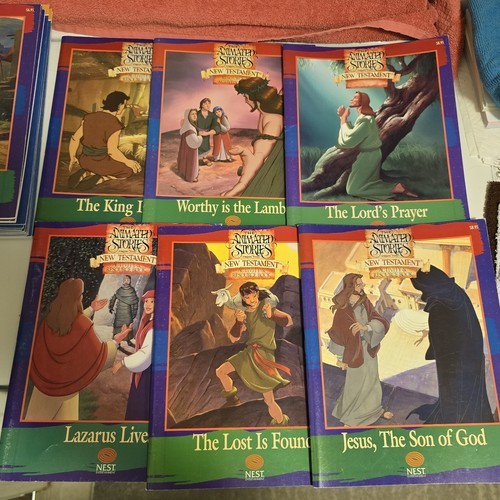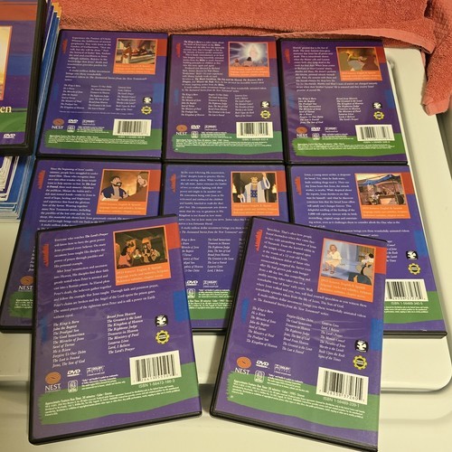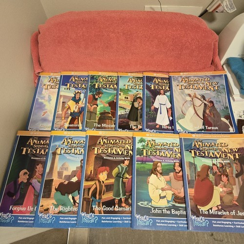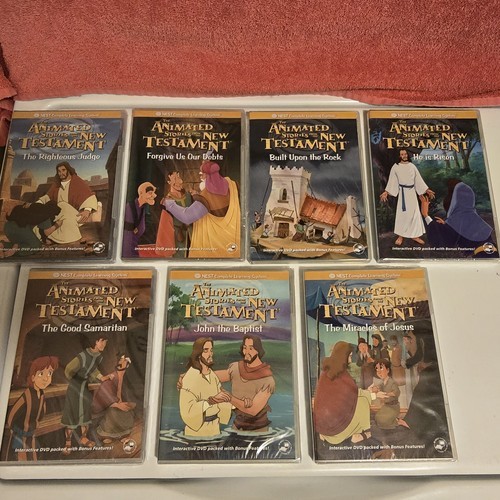 Like New Condition Vintage 1990s - 2005 ish NEST Entertainment Learning System: The Animated Stories from the New Testament Dvds / Workbooks. Great for Homeschooling. Book of Mormon. Includes Lot Of 24 (New Sealed / Like New) DVDs + 23 Resource Activity Books - (1) He is Risen - has a few pages with some minimal writing filled out. + (2) Miracles of Love Song Books + (1) Music CD. Stunning Condition overall. Each workbook has a level 1 and level 2 certificate in the back of each book.