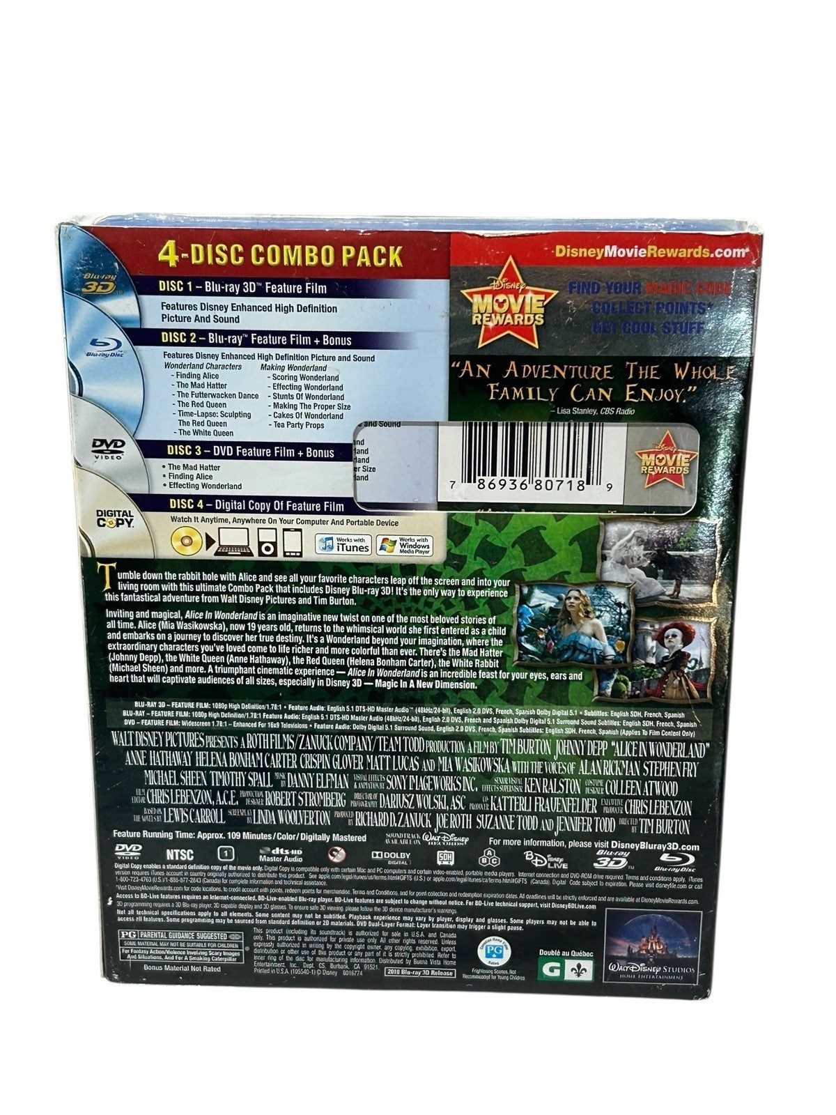 - NEW Alice in Wonderland 3D Blu-ray DVD Digital 4-Disc Set w Lenticular Slipcover