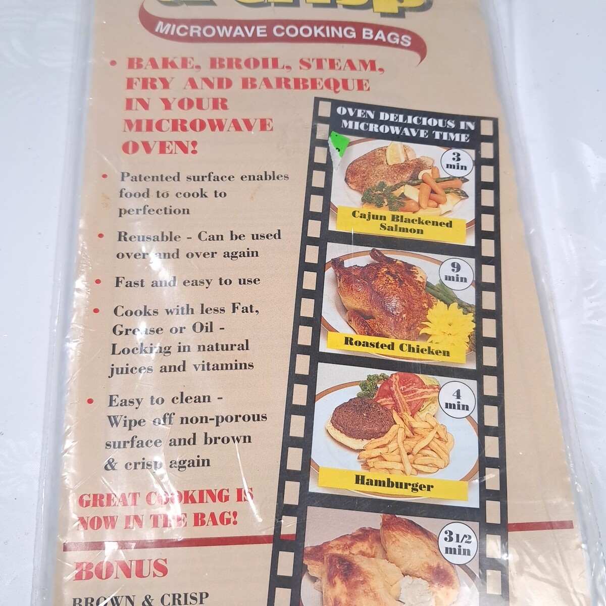 - NEW Brown & Crisp Microwave Cooking bags 12 Medium Bags As Seen On TV Chef Tony