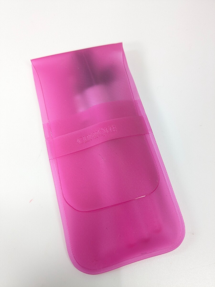 NEW CLINIQUE travel makeup brush set translucent pink mini brushes plastic case