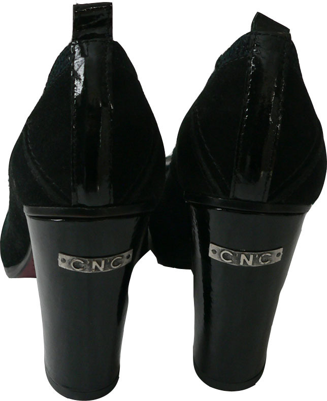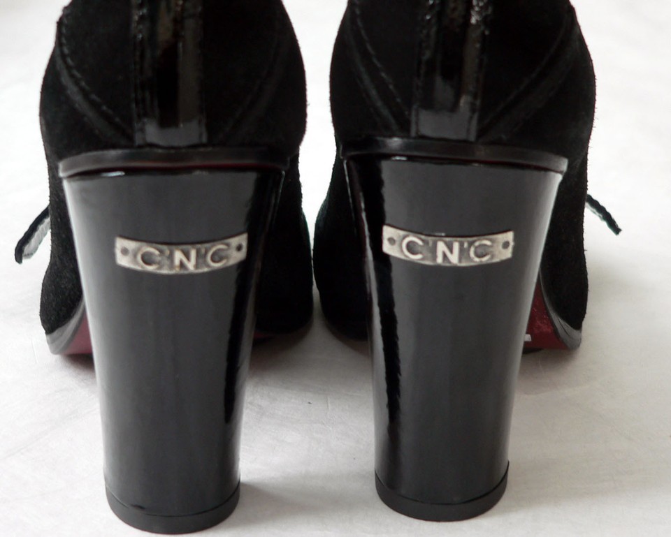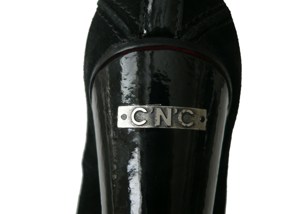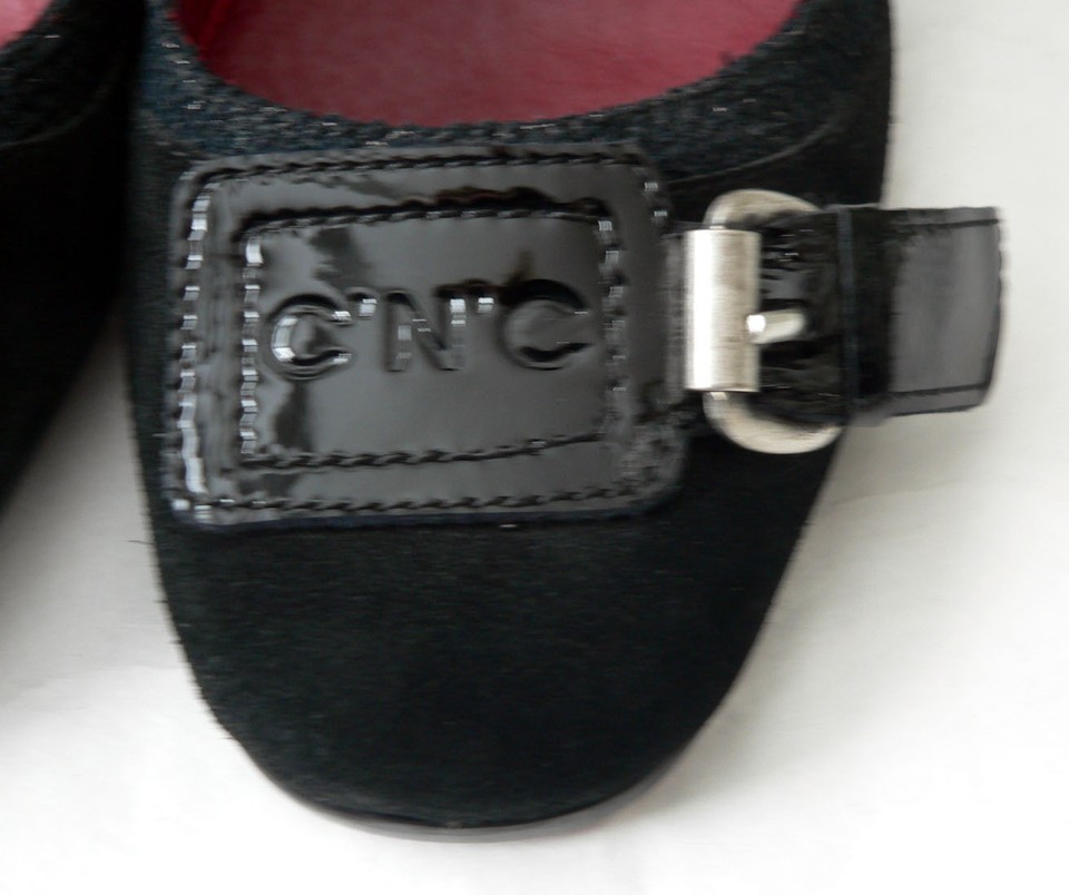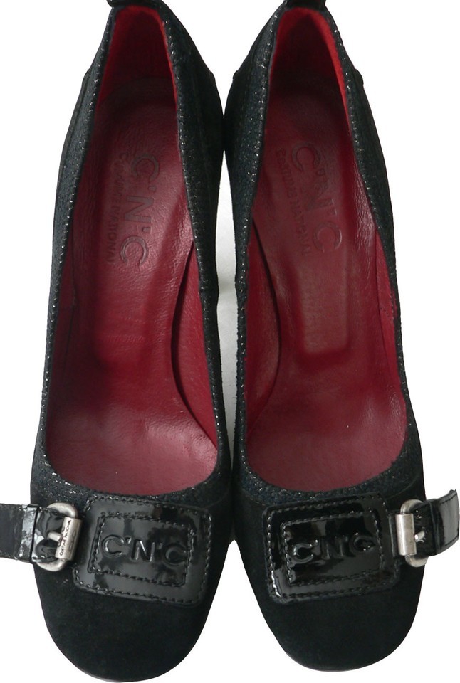 Brand new COSTUME NATIONAL upscale runway shoes. Size 37. Retail price $794.00. Amazing shiny patent leather and suede pumps/heels in jet black. Has a 4 inch sexy, black patent heel that has CNC silver nameplate on back of heel. There is also a silver buckle and black patent nameplate on top that says C.N.C.~ Costume National so everyone will know you have the finest designer taste! Leather sole has rubber non-skid forefoot. Lined in red smooth leather. I have taken a lot of pictures so you can see everything! Super chic and stylish!