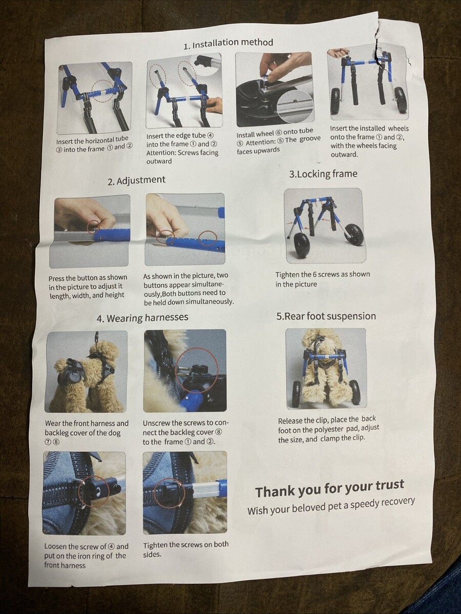- NEW!!! Dog Wheelchair For Back Legs Lightweight Adjustable For Large Dogs