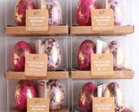 This is for a dozen brand new in box Decorative Easter Table Pink/Purple Gold Foil Egg Place Card Holders They come in sets of two, you will receive six of them for a total of 12 place card holders. Every set of two eggs comes with 4 place cards. Eggs measure about 2 1/4 inches tall I have them in a blue/teal color as well in my other listing.