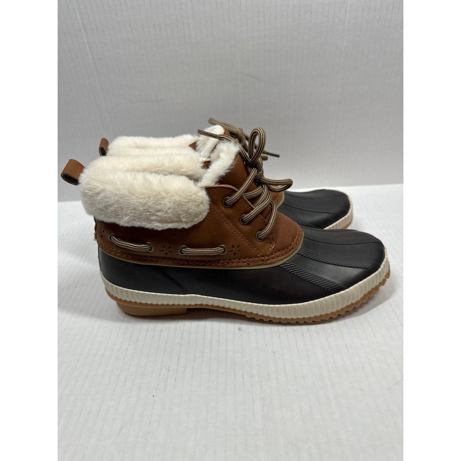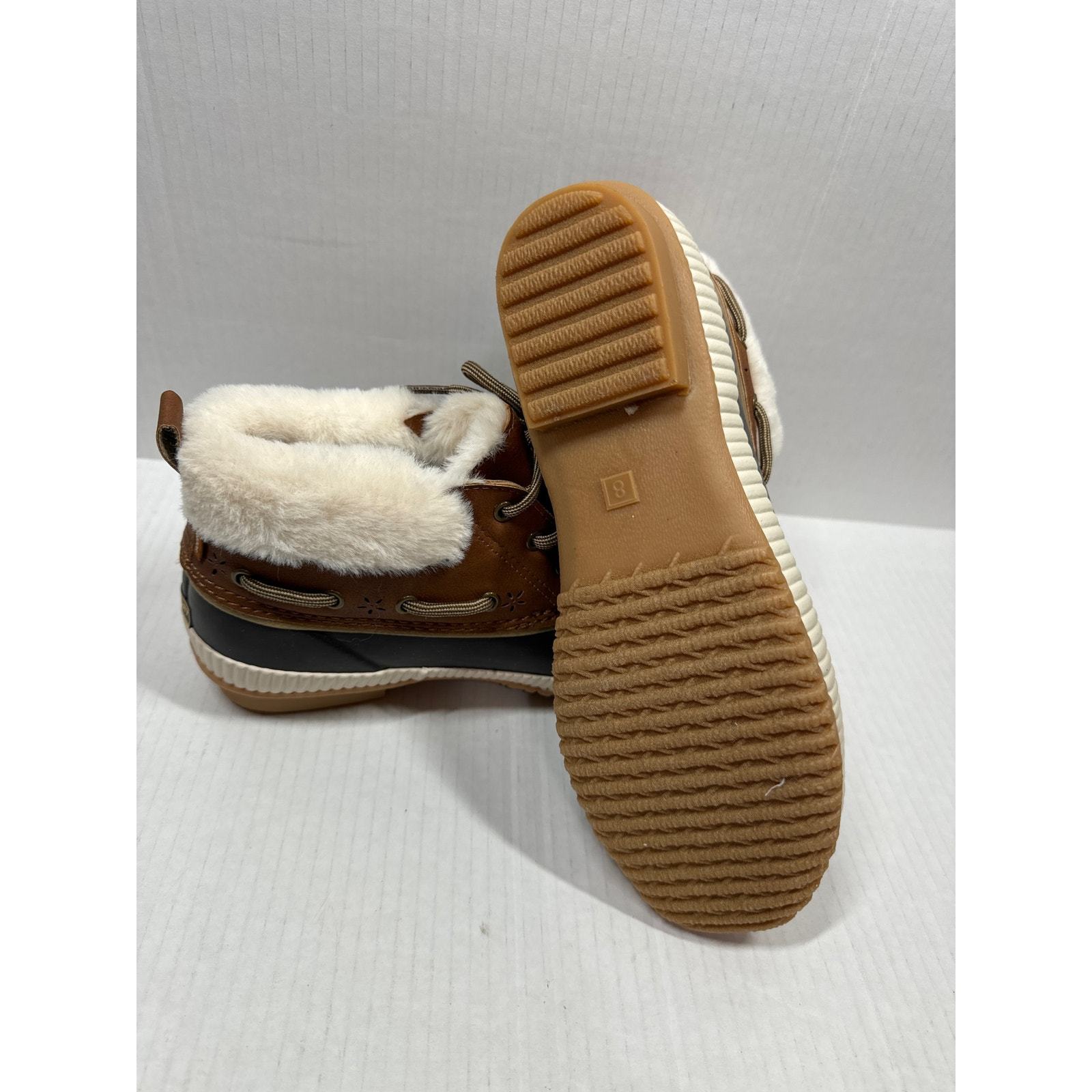 - NEW JSport Womens Mary Faux Fur Trimmed Slip On Duck Boots Brown Leather Sz 8M