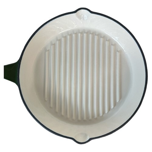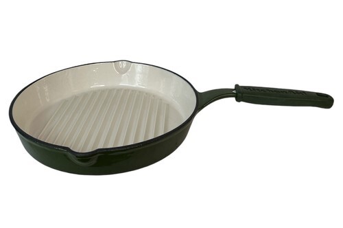- NEW KitchenAid Cast Iron 11" Round Grill Pan with Silicone Handle Green Enamel