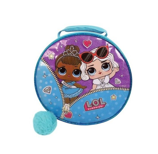 - NEW L.O.L. Surprise Round Lunch Bag w/ pom pom purple & teal zippered handle