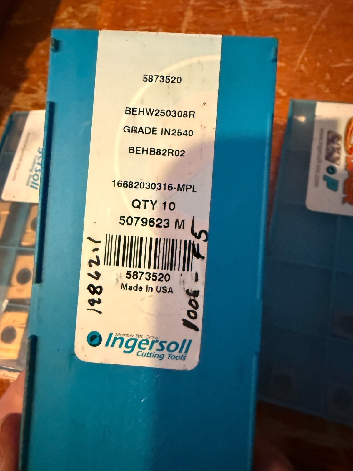 - NEW LOT of 2 Ingersoll Milling Carbide Inserts 2 Hole # BEHW250308R IN2540 vh3