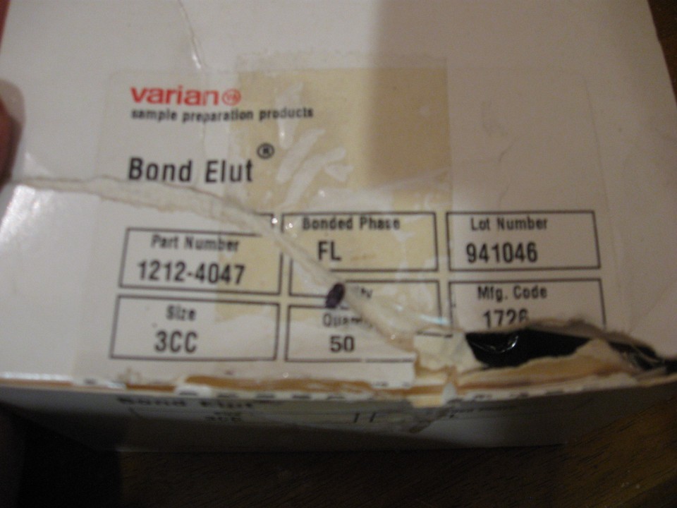 NEW LOT of 40 Varian Bond Elut / bond type - FL pn#- 1212-4047 Size- 3CC This is good to go. Will work perfect or money back. Looks like packs of 40.