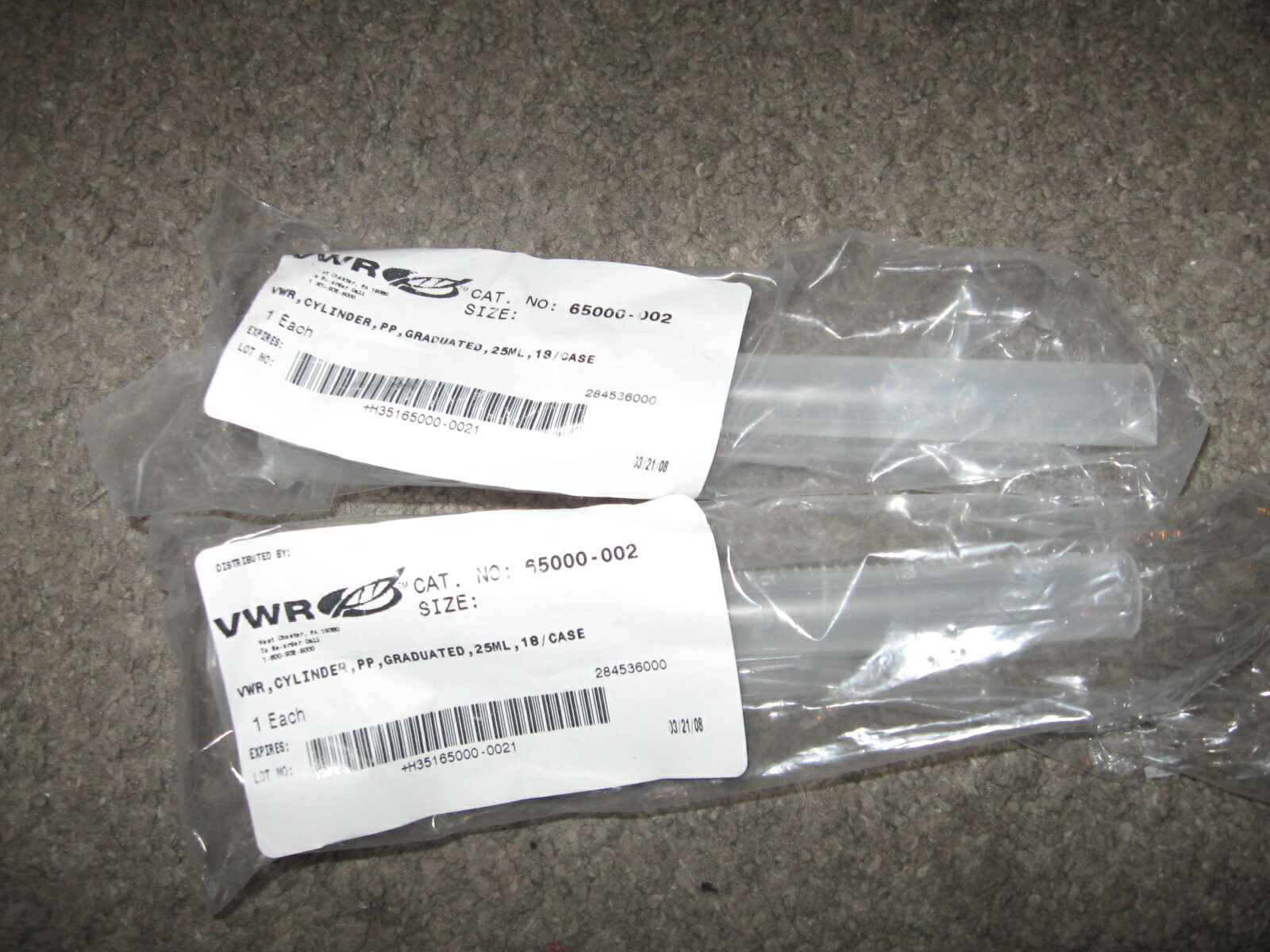 - NEW Lot of 2 VWR Scientific Graduated Plastic Cylinder 25ml PP # 6500-002