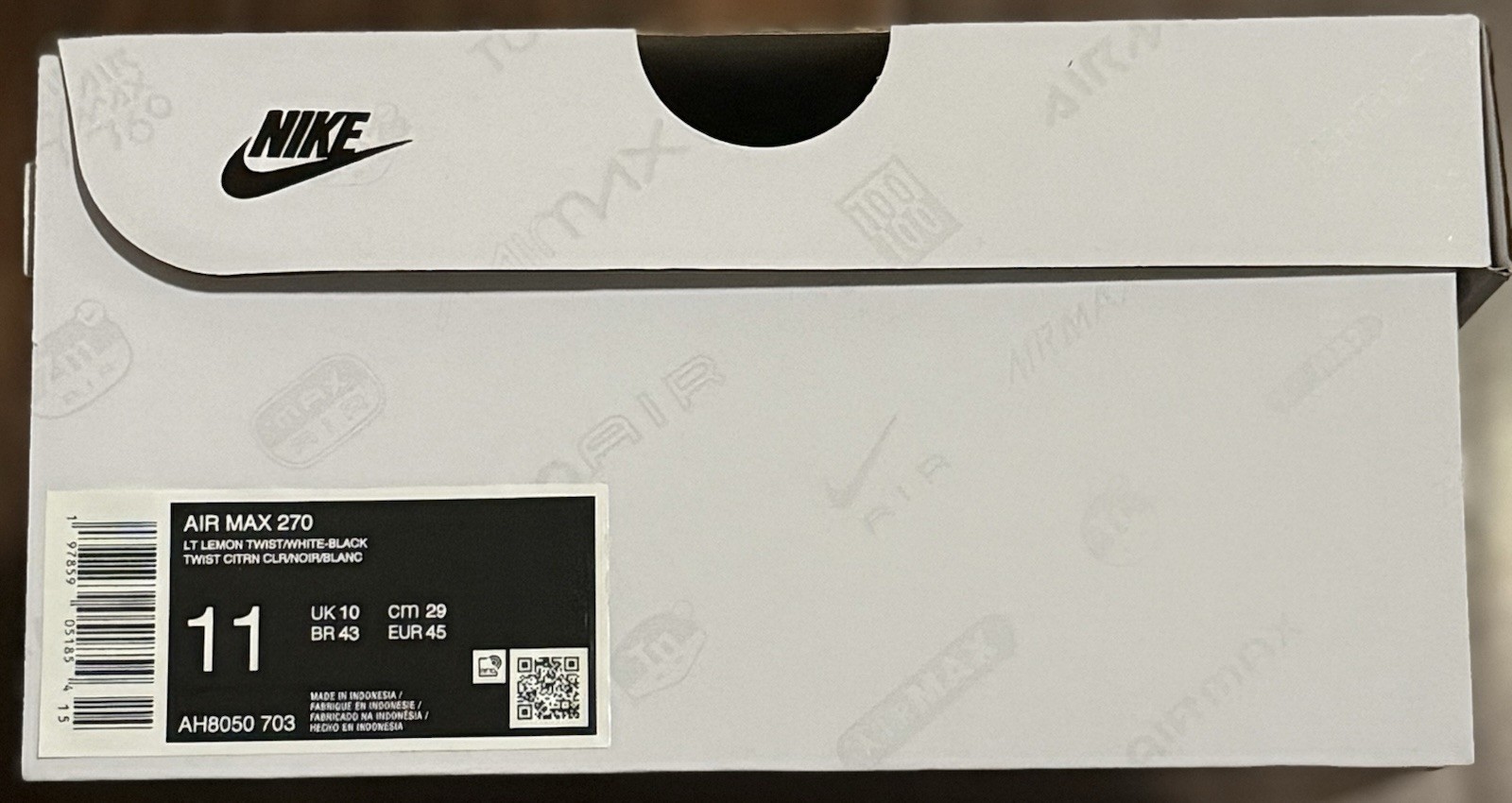 - NEW Nike Air Max 270 Black Light Lemon Twist White AH8050-703 Men’s Size 11