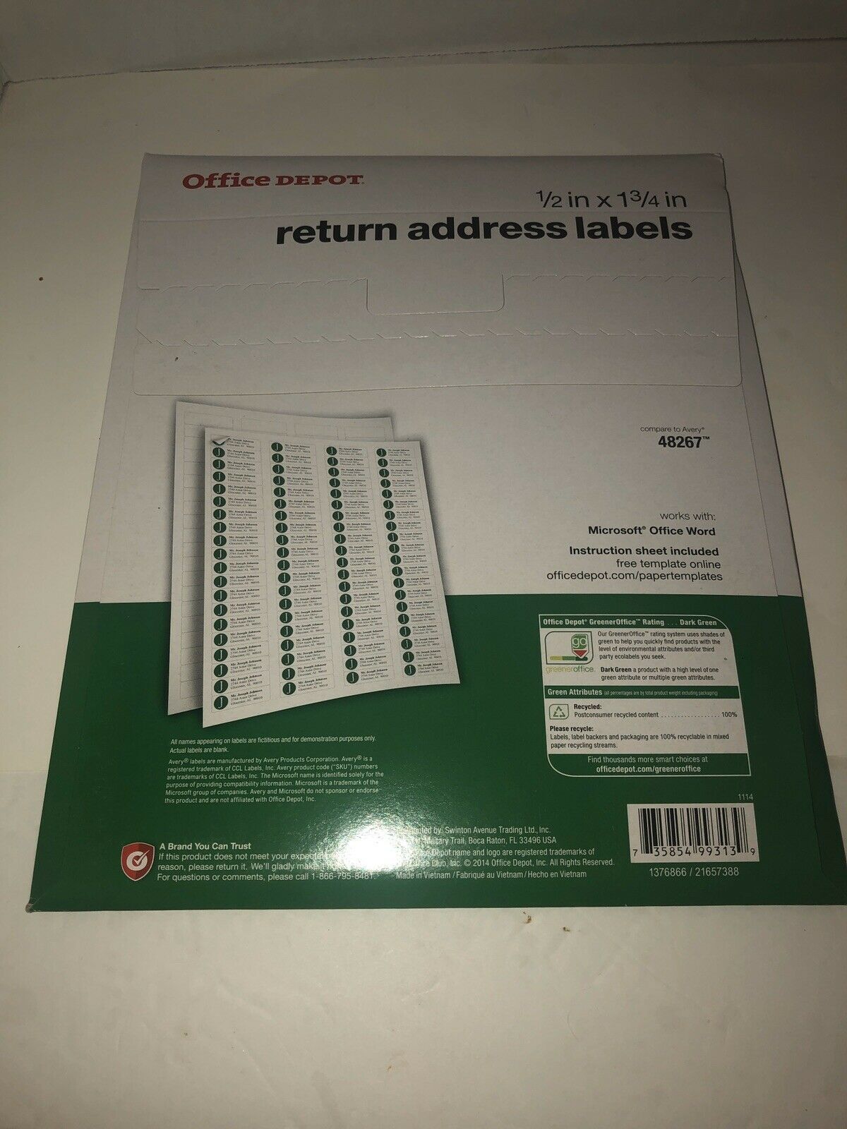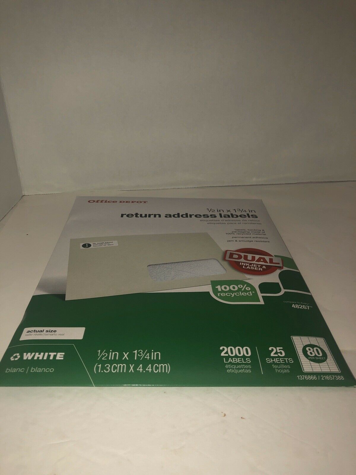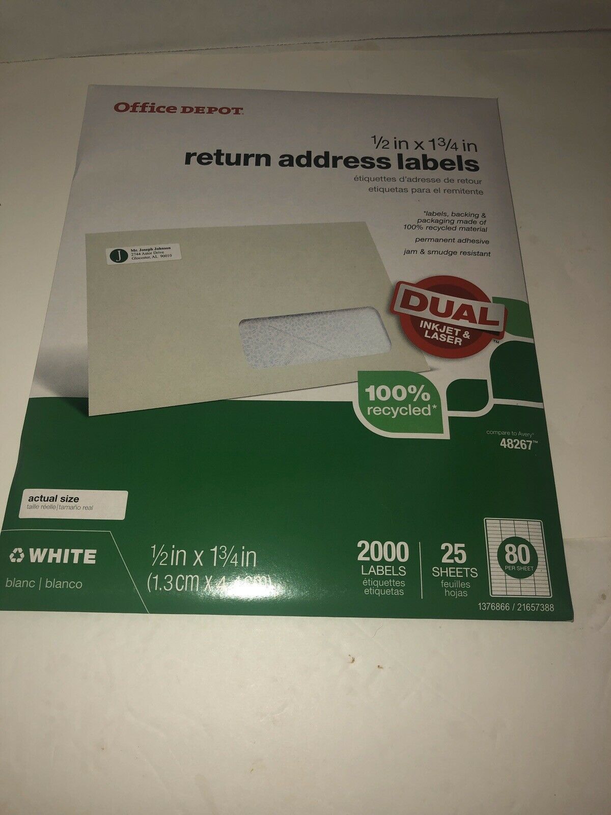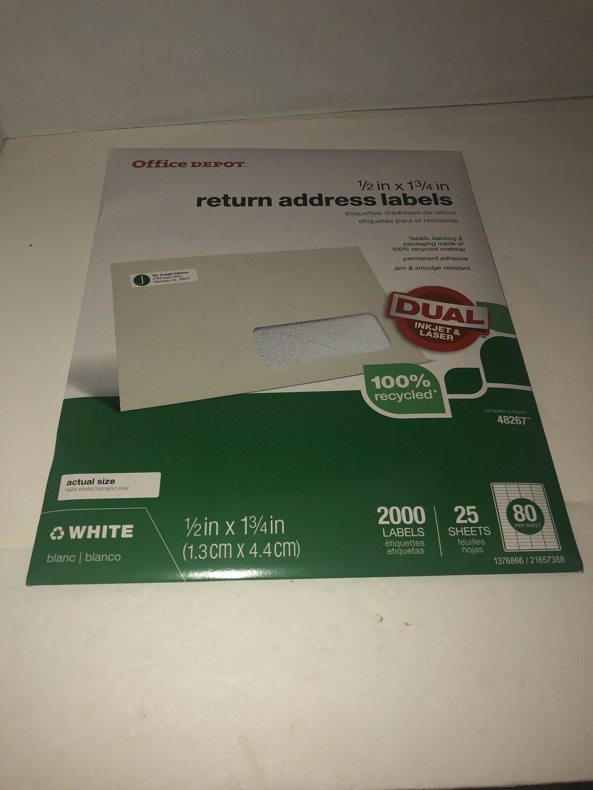 Office Depot Return Address Mailing Label - 1/2" Width x 1 3/4" Length - 2000 per pack (80 labels per sheet x 25 sheets per pack). Compare to Avery 48267. 100% recycled. Dual for Laser or Ink Jet printer.