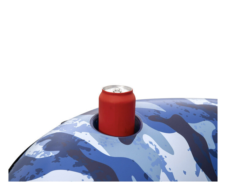 Deflated Size: 53 in. x 53 in. / 1.35 m x 1.35 m ? Inflata-Shield? material resists puncture, limits stretching and enhances grip ? Half grab rope with built-in grommets ? 1 cup holder ? Unisex pool float is perfect for adults of all ages ? Easy to inflate, deflate and store ? Contents: 1 river tube, 1 repair patch
